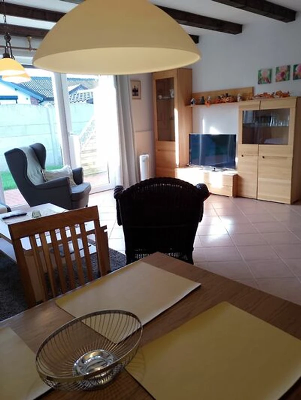 Het smaakvol ingerichte vakantiehuis (80 m²) met zuidwest terras en parkeerplaats is met zijn 2 slaapkamers, woonkamer, badkamer met wc en douche en satelliet-tv zowel geschikt voor gezinnen tot 5 personen als voor senioren en rustzoekers als gezellig thuis.