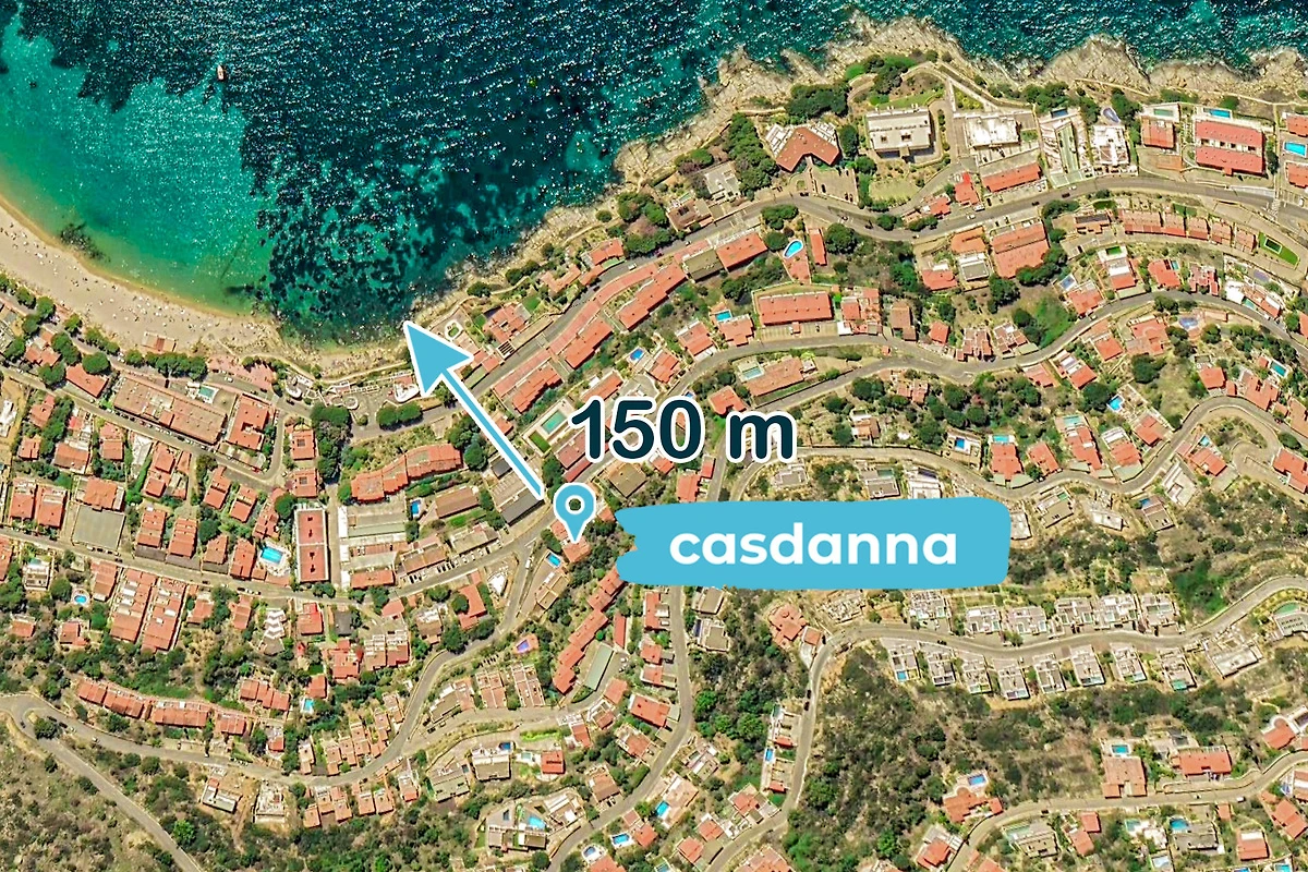 Ons vakantiehuis Casdanna Roses is gelegen op een helling direct aan de Cala (kleine baai) Canyelles Petites. Het strand is 130 meter in een rechte lijn verwijderd en toegankelijk via een trap, of 400 meter via een gemakkelijkere weg.