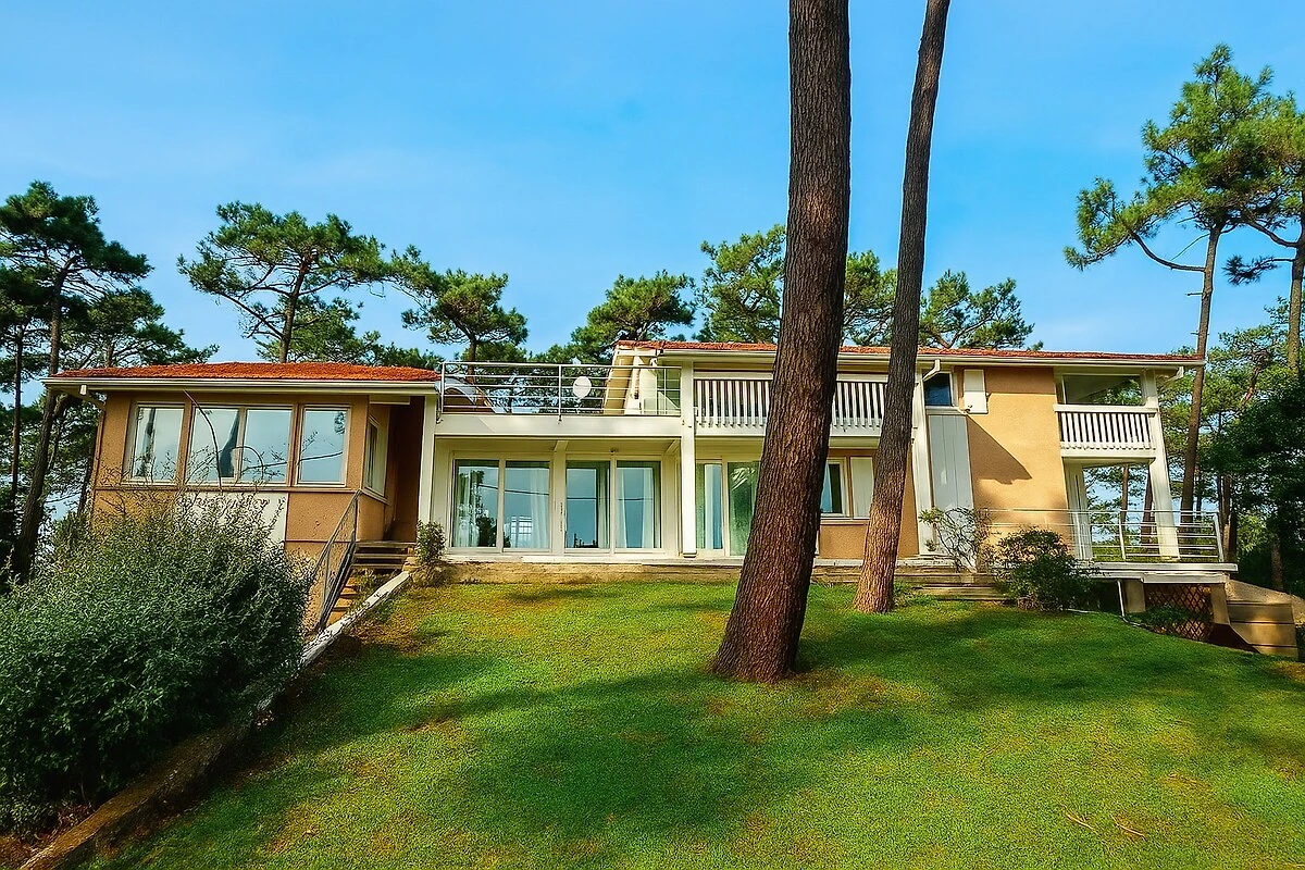Dit goed onderhouden vakantiehuis ligt op de eerste verdieping van een tweegezinswoning, in de mooiste villawijk van Hossegor, op een ideale locatie, namelijk tussen het meer en de zee.