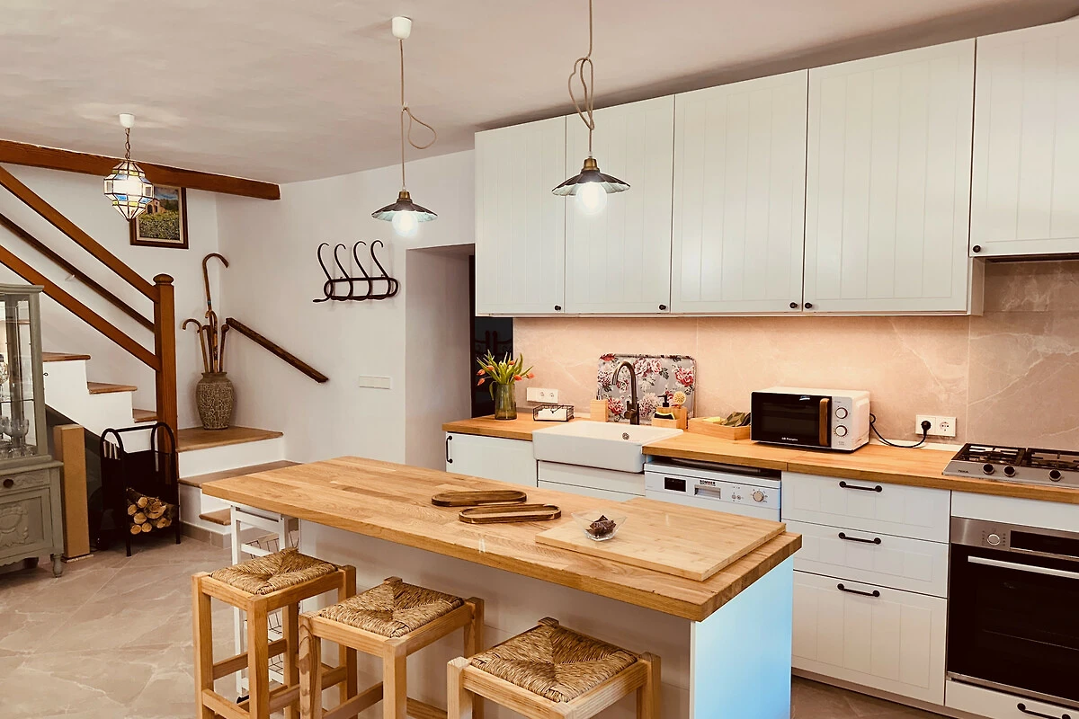 dat was een zeer uitzonderlijke en mooie finca. We waren er met vier volwassenen twee kinderen. Citroenen, granaatappels, sinaasappels en mandarijnen uit de boom en eieren uit het kippenhok. Vincent, zoals hij zich voorstelde, leidde ons bij aankomst rond in het huis. Het zwembad had een heerlijke temperatuur (24°C) en de barbecue was perfect voor het avondmenu. Natuurlijk maakten we ook excursies naar het prachtige Cala Pi op Formentor, Cala San Vincent en het strand van Can Picafort Platja den Muro... Op 1,5 dag na was het prima weer. Ondanks alles was het de hele tijd lekker warm.