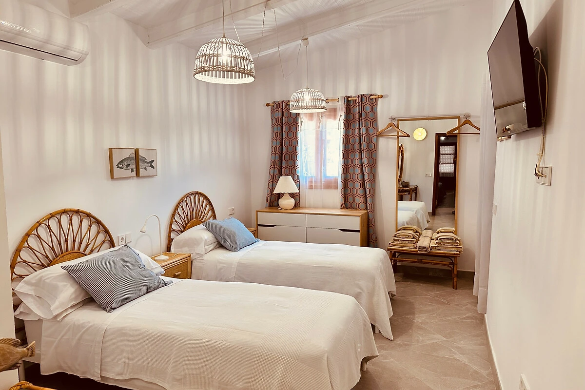 Het huis is heerlijk met echt goede overdekte buitenruimtes. Het was schoon en de paar problemen die we hadden met de airco werden meteen opgelost. Er was een mooie verwelkoming met lokale producten en een fijne cake ??. We hadden 's avonds problemen met muggen maar kochten iets tegen muggen. De locatie is prima in relatie tot Polenza en Alcudia.