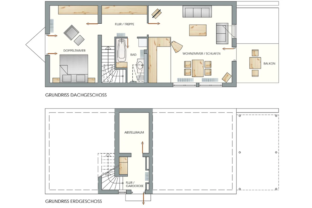 In de ruime en hoogwaardig ingerichte vakantiewoning, op de 1e verdieping van het huis, vinden 3 personen + een klein kind voldoende ruimte voor een ontspannen vakantie. Het appartement is 80 m² groot en is verdeeld in een hal, slaapkamer, keuken/woonkamer, badkamer en balkon. Vanuit de volledig uitgeruste keuken-woonkamer, met zithoek, heeft u door het grote raam aan de voorkant een prachtig uitzicht op de tuin en in de winter zelfs op het meer. Vanuit de woonkamer heeft u toegang tot het gemeubileerde balkon. De slaapkamer is uitgerust met een tweepersoonsbed van hoge kwaliteit en een leeshoek. Een extra bed voor een 3e persoon is beschikbaar in de woonkamer. Vanuit de slaapkamer heeft u toegang tot het kleinere 2e balkon. U zult zich comfortabel voelen in de grote, lichte badkamer met bad, wasmachine en vloerverwarming.