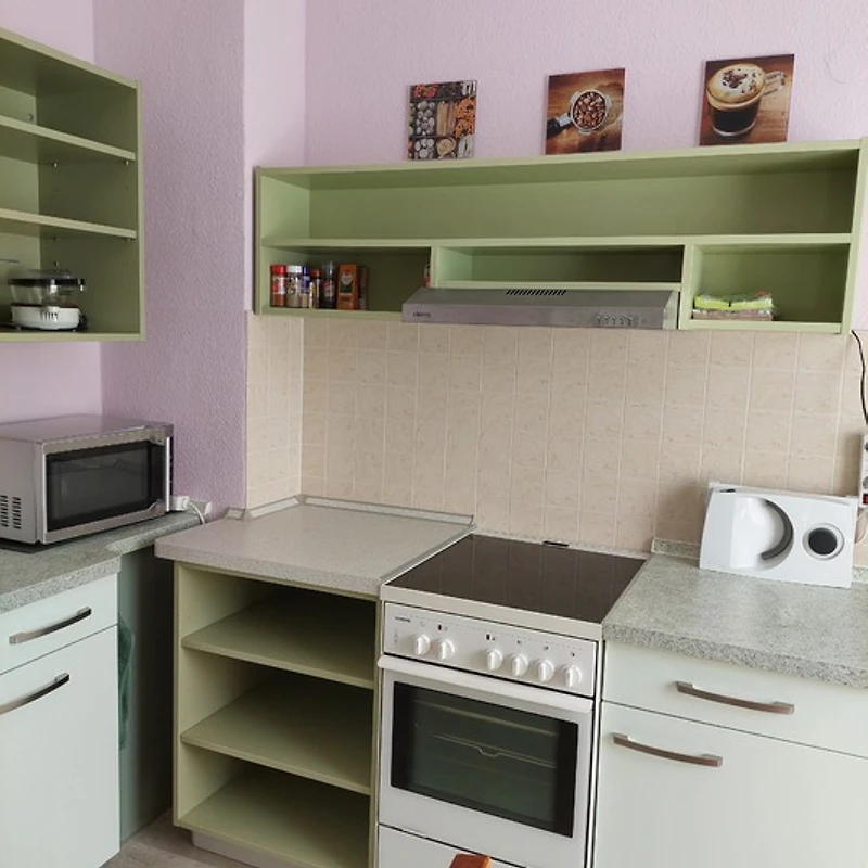 Tweepersoonskamer met kitchenette en badkamer 26 m² per nacht 30,00 Euro.