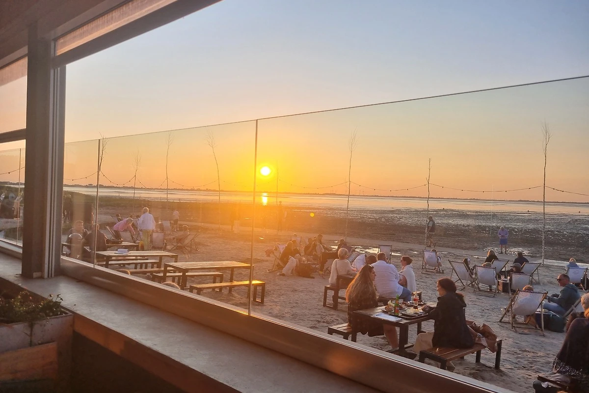 2 buitenterrassen en ontspanningsruimte met uitzicht op het strand en de Waddenzee