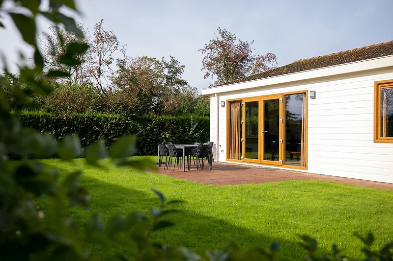 Binnen vind je een gezellige woonkamer met kabel-tv en een open keuken die volledig is ingericht met koelkast met vriesvak, combimagnetron en vaatwasser. De badkamer is zeer ruim en voorzien van douche, toilet, wasmachine en droger. Daarnaast is er een apart gastentoilet aanwezig. Het chalet telt drie slaapkamers: twee slaapkamers met elk twee eenpersoonsbedden tegen elkaar en één slaapkamer met een stapelbed. In de woonkamer staat een slaapbank. De ouderslaapkamer beschikt bovendien over een eigen tv. Buiten geniet je van een gemeubileerd terras en een royale tuin.