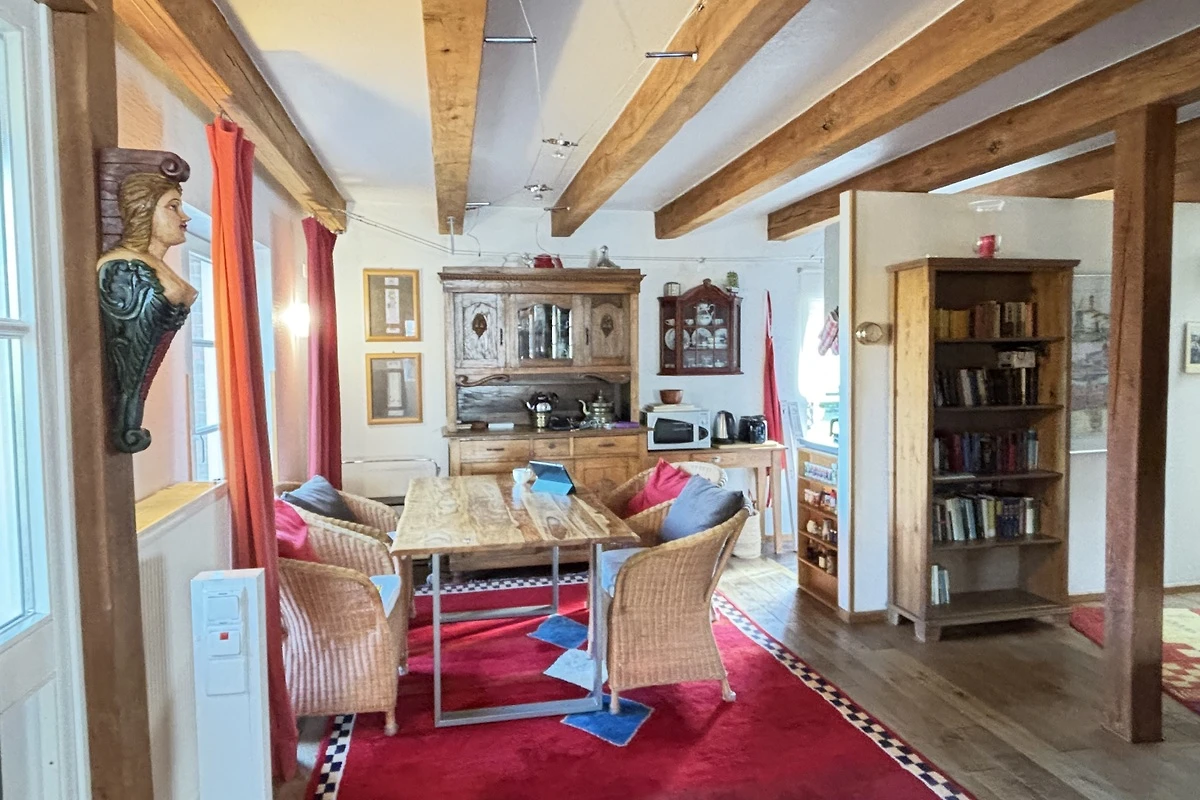 Nadat het pand midden in de kleine, rustige Noordzeebadplaats Dornumersiel was aangekocht en van een nieuwe afwerking was voorzien, moesten de nieuwe eigenaren constateren dat grote delen van het huis, dat ongeveer 200 jaar oud was en vele malen was verbouwd, in een zeer deplorabele staat verkeerden. In de loop van 2002/2003 zijn uitgebreide maatregelen genomen om de resterende substantie te renoveren en te herstellen.