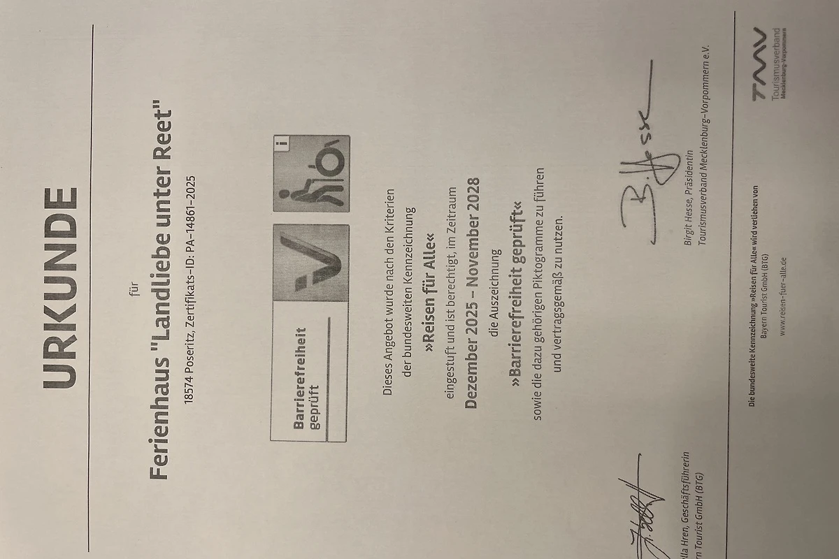 We werden heel vriendelijk ontvangen door Herr Dombrowski en rondgeleid in het huis. Het gloednieuwe huis is van hoge kwaliteit en perfect ingericht. Alles is super schoon, inclusief dingen zoals de barbecue en tuinmeubelen. In de nieuw ontwikkelde kleine woonwijk kun je genieten van de rust, ver weg van de toeristenmassa. Vanaf het zonnige terras konden we prachtige zonsondergangen en de trek van de kraanvogels observeren.