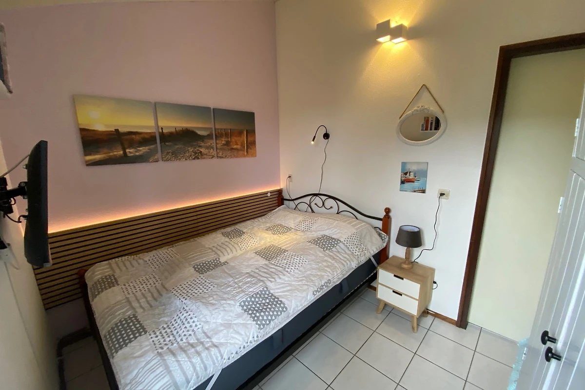 Het vakantiehuis heeft twee slaapkamers (één kamer met satelliet-tv met Duitse zenders), beide kamers zijn uitgerust met tweepersoonsbedden en kledingkasten, voor een eventuele 5e. Person besteht die Möglichkeit, auf dem Schlafsofa zu übernachten. Das Badezimmer ist mit einer Duschkabine (Regendusche) mit Thermostatarmatur, Waschbecken und WC ausgestattet. In der Küchenzeile gibt es einen Kühlschrank mit Gefrierfach, Spülmaschine, Mikrowelle, kleinen Backofen, 4 Gaskochplatten, AirFryer, Kaffeemaschine, Kaffeepadmaschine, Eierkocher, Wasserkocher und Toaster. Zum Grillen stehen ein Kontaktgrill und ein Gartengrill zur Verfügung. In de woonkamer bevindt zich een modern entertainment-systeem bestaande uit een smart-tv (satelliet-tv met Duitse zenders), een Blu-ray-speler en een Bluetooth-soundbar. Internet (WLAN). Open haard. Het huis is uitgerust met rookmelders, brandblusser en CO2-melder.