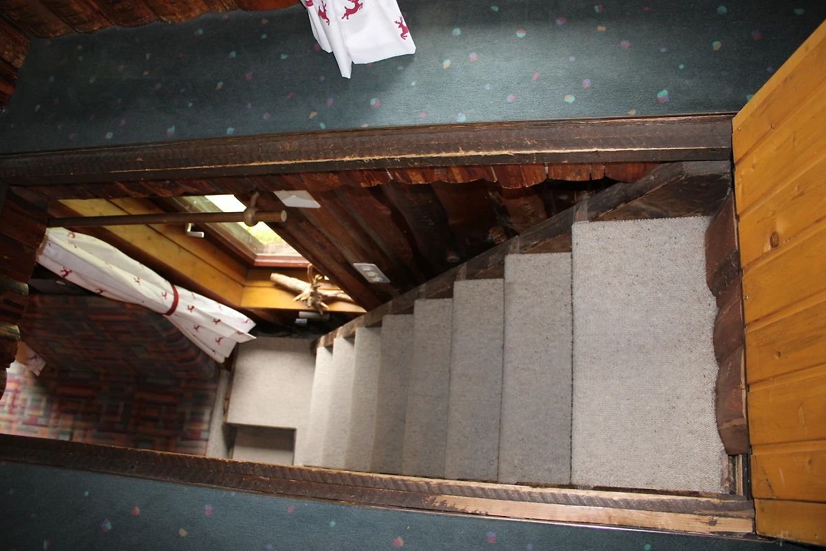 Ook de grote vlek in de achterkamer op het tapijt, zou dringend aangepakt moeten worden!