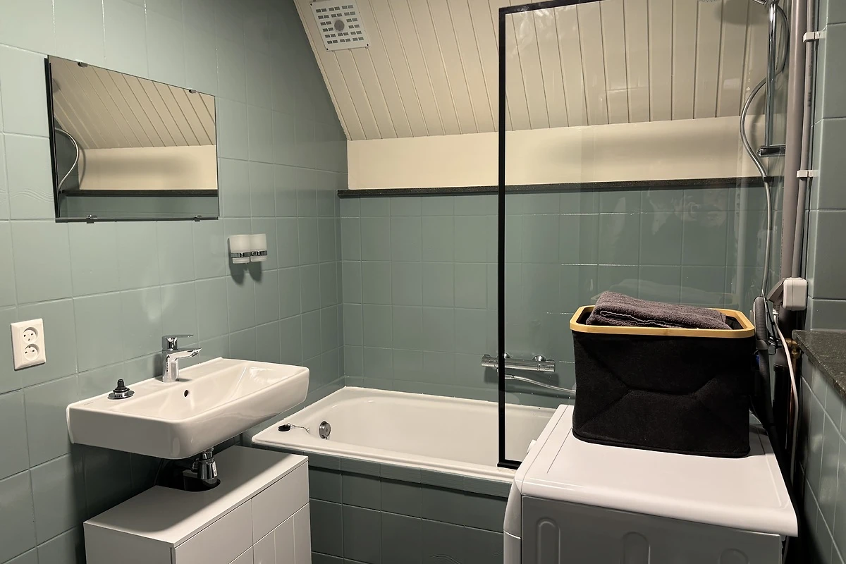 In de badkamer zijn tevens een wasmachine en droger aanwezig.