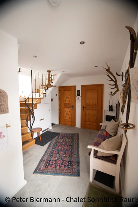 De entree biedt voldoende ruimte voor schoenen en jassen. Vanuit het entreegebied kunt u een extra gastentoilet, de eerste verdieping en het woongedeelte bereiken. Een kleine opslagruimte biedt extra ruimte voor skischoenen en dergelijke.