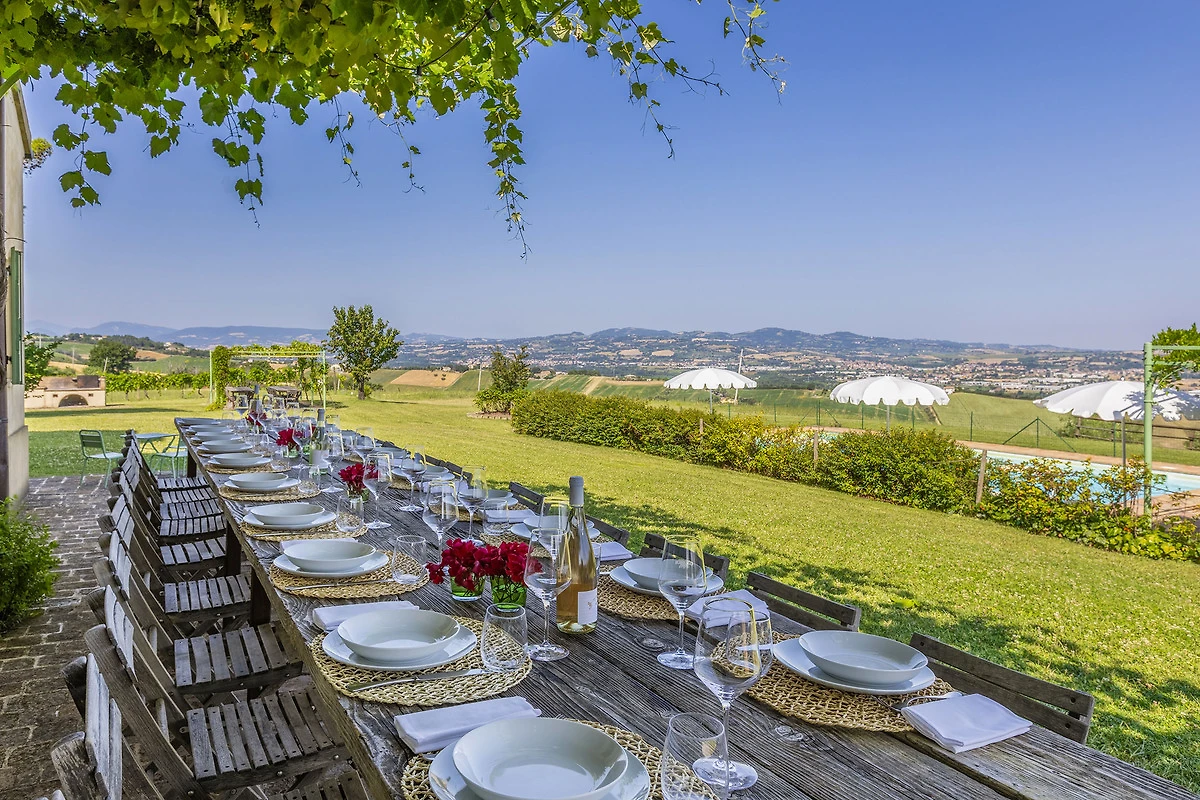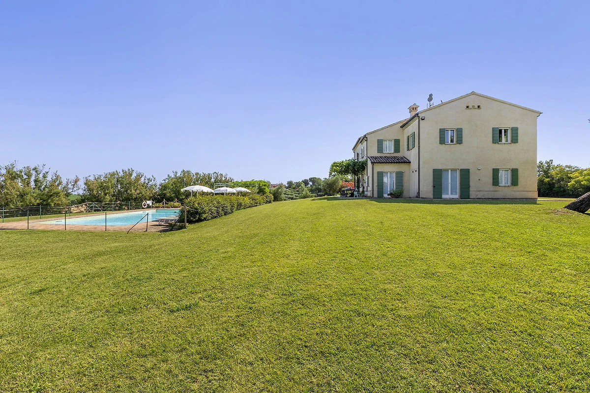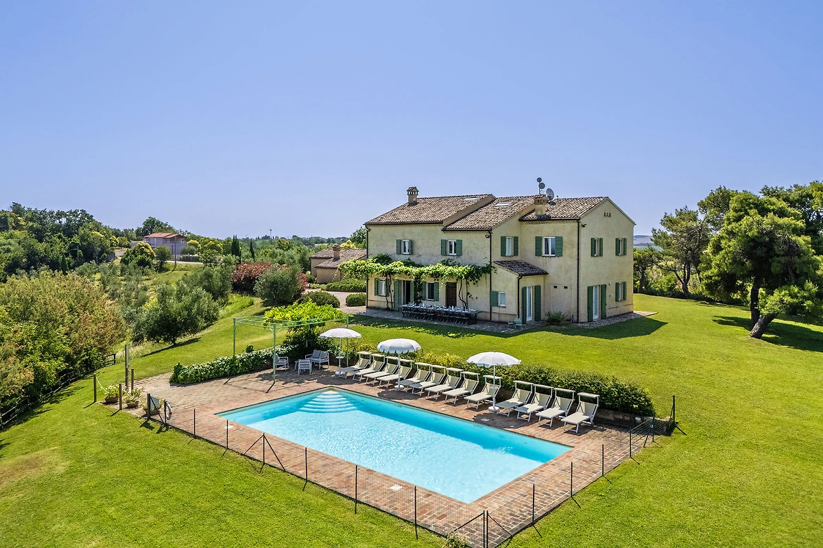 Deze prachtige villa, zeer groot en met een prachtig panoramisch uitzicht, is gelegen in de provincie Pesaro-Urbino, in het noordelijke deel van de regio Marche, op slechts 10 minuten van de Adriatische kust en van de stranden van zeer fijn zand, zoals Senigallia en Fano, met een geringe diepte perfect voor kinderen.