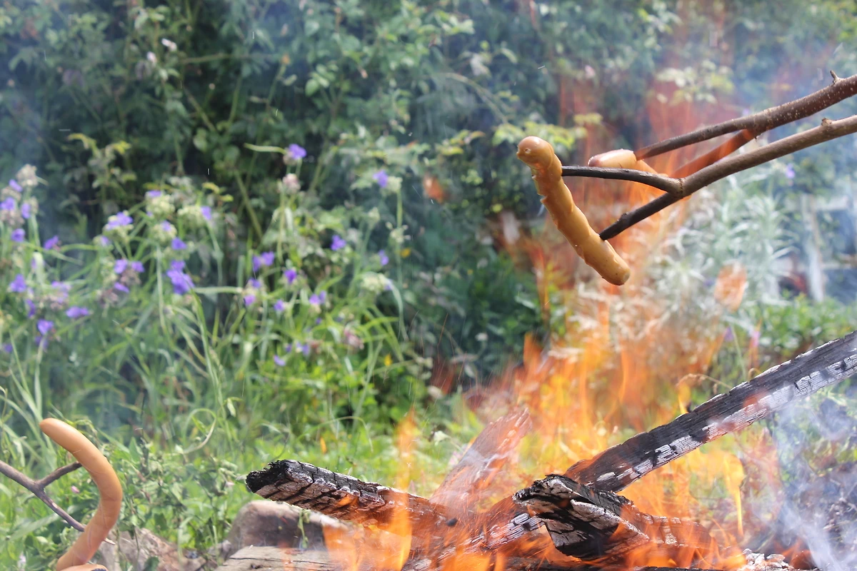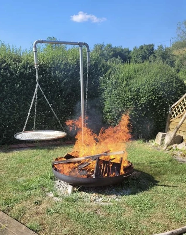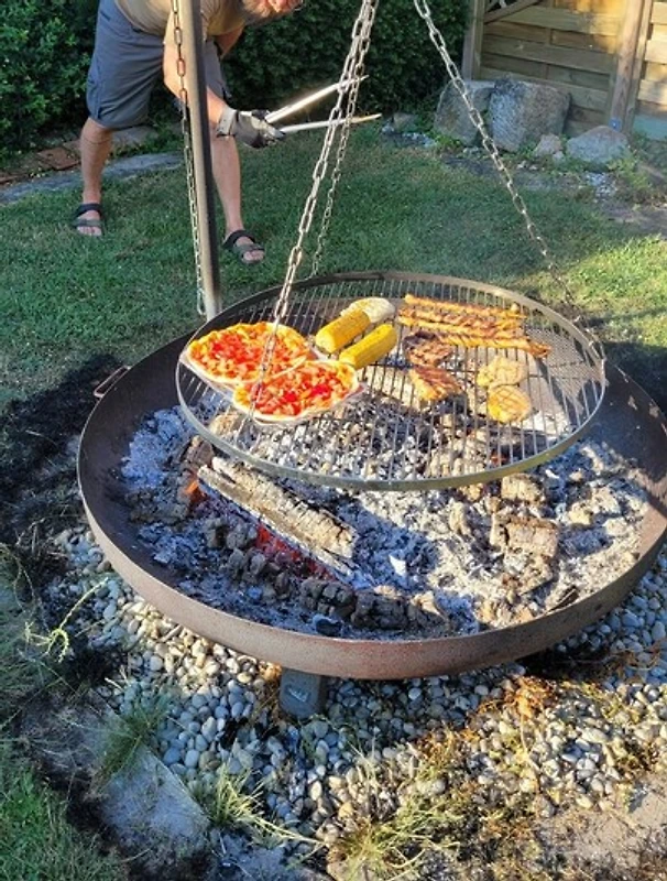 Lounge terras, overdekte zitplaatsen, te midden van geurige beplanting, kampvuur romantiek in de avond, barbecue