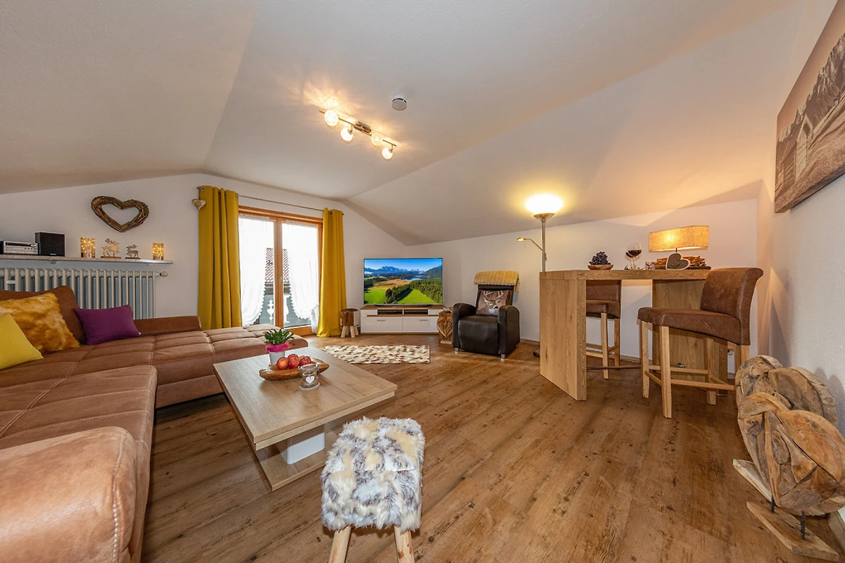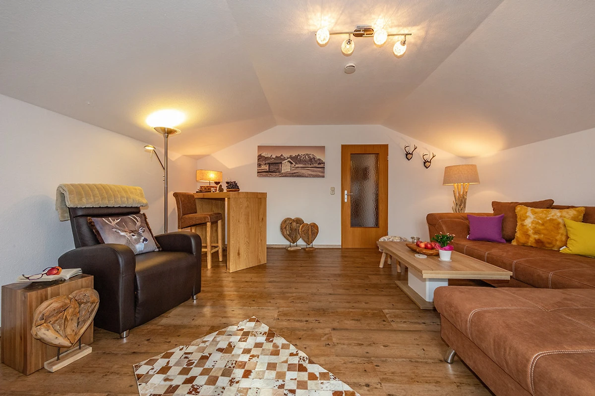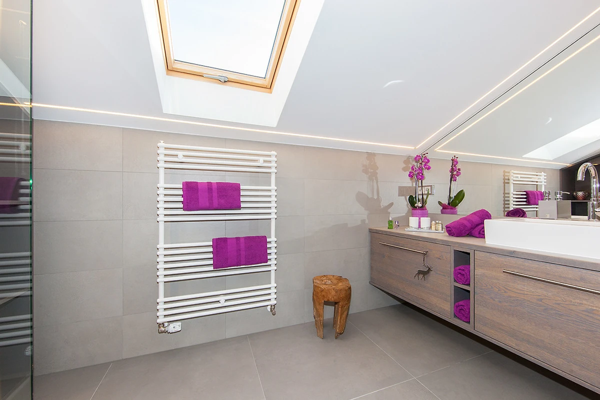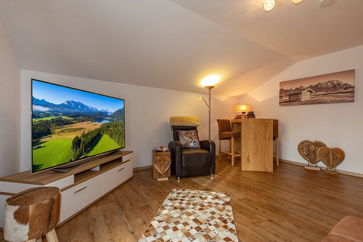 uw 5-sterren droomappartement, dat zich uitstrekt over de gehele bovenste verdieping met een balkon op het zuiden en uitzicht op het berglandschap.