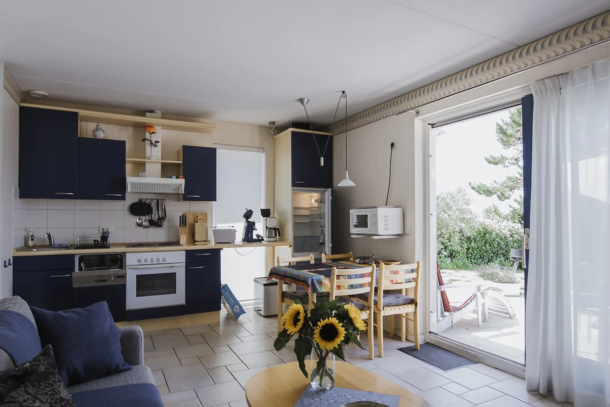 Vanaf de terras (westelijk gericht) heeft u een prachtig uitzicht op de Noordzee-duinlandschap en de prachtige zonsondergangen. Bij gunstig weer kan men de zee horen ruisen vanaf het terrein. Ca. 800 m tot aan het fijnzandige strand, ca. 400 m tot aan het dichtstbijzijnde winkelcentrum, restaurants in de buurt.