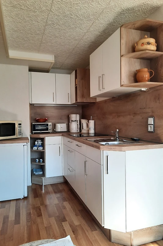 De vakantiewoning heeft een aparte ingang en bestaat uit drie kamers. Een gecombineerde woonkamer