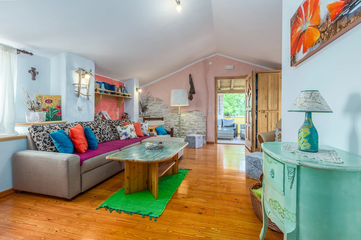 In Istria in the small charming village of Cabrunici you will find the beatiful Villa Loreta . Thi s wonderful istrian villa has more than 140m2 divided on two floors and 3 bedrooms. This holiday home this can accommodate up to 6 persons.