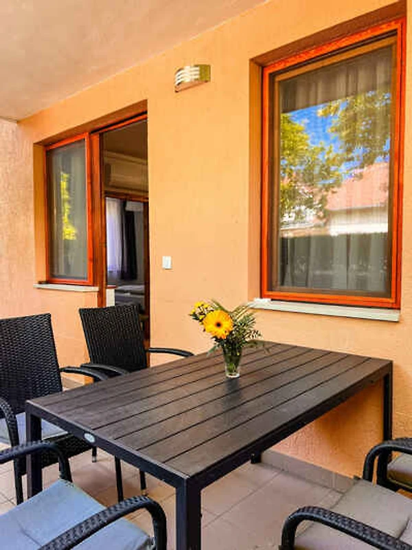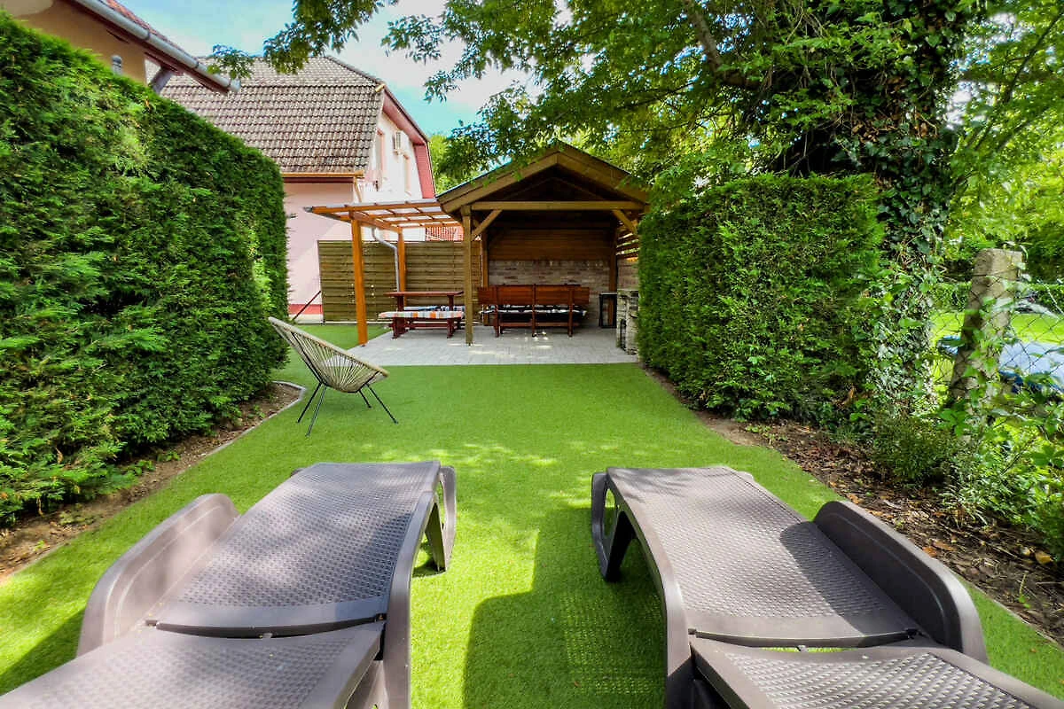 Ligging: Balatonboglár. De vakantiewoning ligt in een dubbelhuis en is modern ingericht. Aan het eind van de doodlopende weg is nauwelijks verkeer. Deze plaats is populair vanwege het uitzicht op het meer en het ligt op een rustige en zonnige plek. De toegangsweg naar het terrein gaat via een geasfalteerde zijstraat. Openbare parkeerplaatsen zijn op de straat voor het huis. De dichtsbijzijnde winkels zijn op 500 m afstand, restaurant 80 m en centrum 400 m.