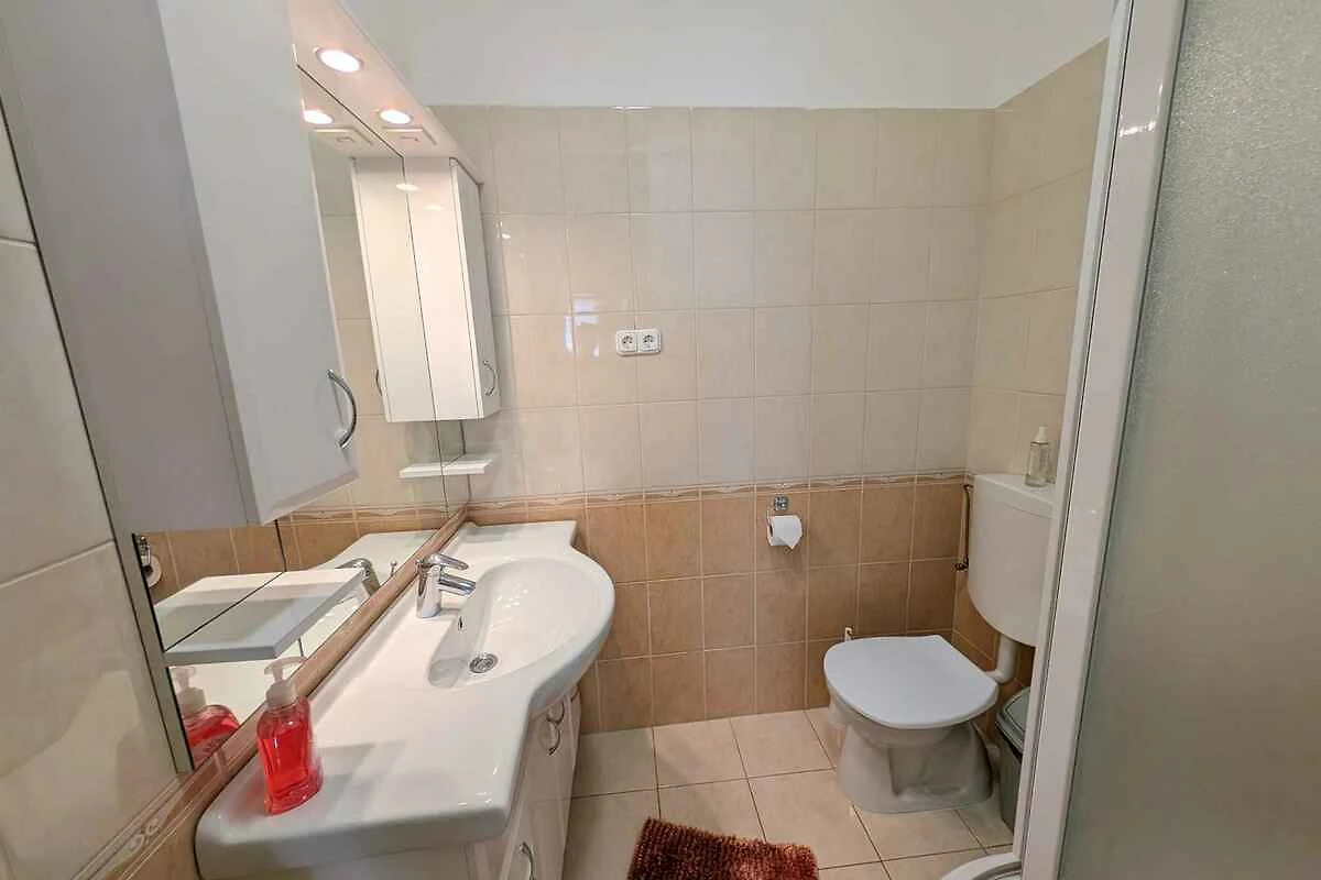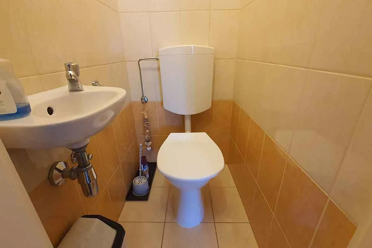 Uw vakantiewoning: Uw vakantiewoning beslaat 1 verdieping, 4 kamers (daarvan 3 slaapkamers), is 100 m² groot en is geschikt voor maximaal 6 personen. Een airconditioning zorgt op hete dagen voor een aangename temperatuur. Ventilator De ingang is im Erdgeschoss en leidt direct in de vestibule. De indeling van de kamers is als volgt: eetkamer met TV. slaapkamer met 2 éénpersoonsbedden en Strijkijzer en strijkplank, naaisetje. 2 slaapkamer elk met 2 éénpersoonsbedden. keuken met gasfornuis, bakoven, koelkast (vriesvak), magnetron, koffiemachine, broodrooster en elektrische waterkoker. badkamer met douche, 1 wastafel, WC en haardroger. aparte WC met WC.