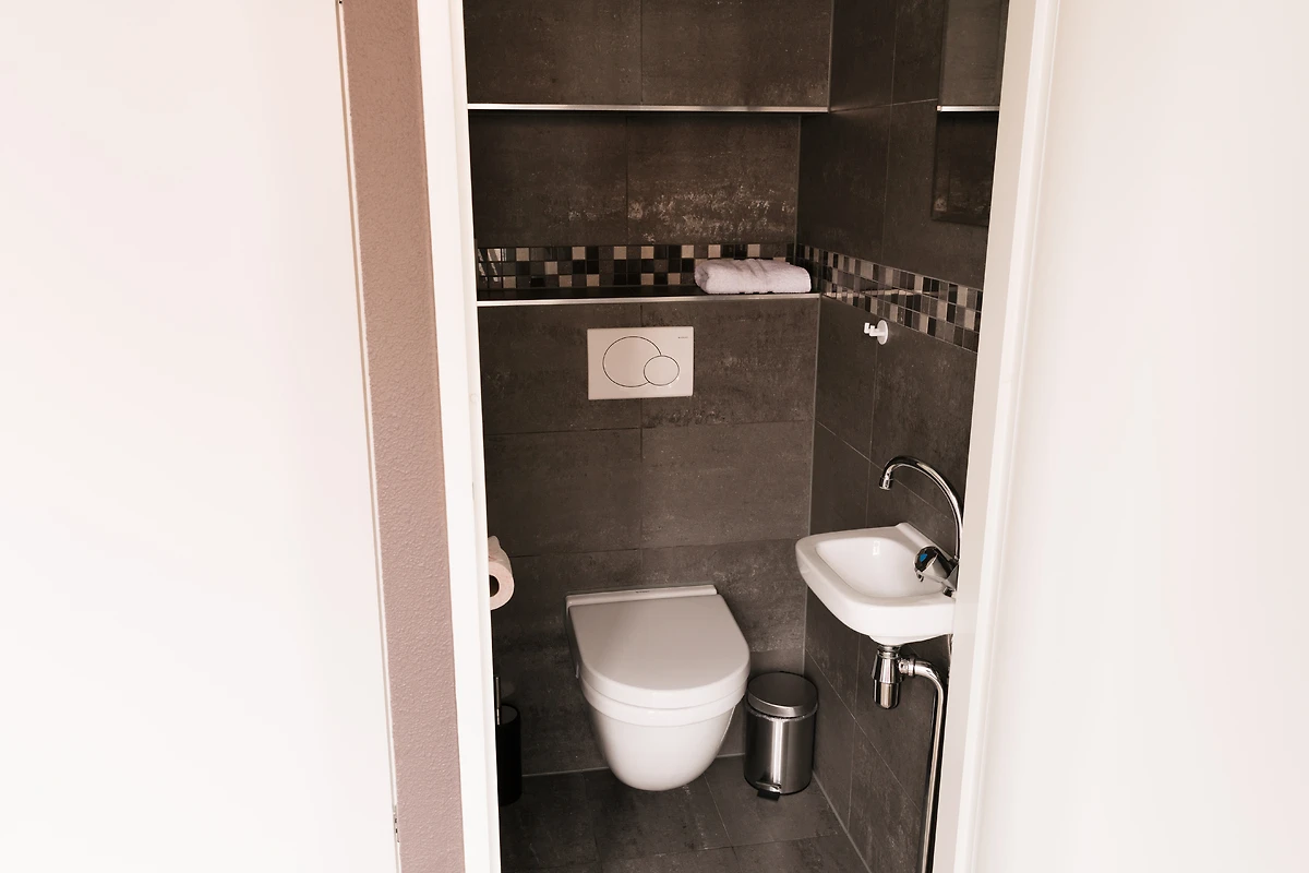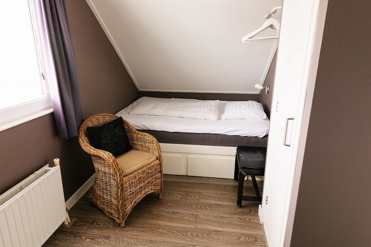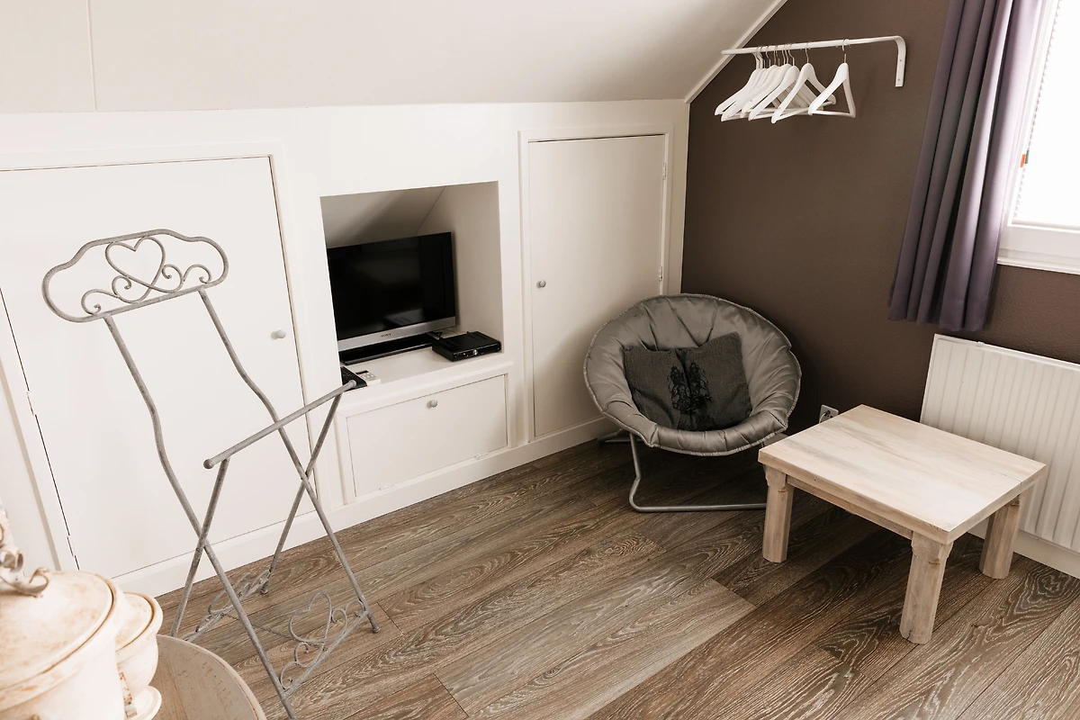 Op de begane grond vindt u een gezellige woonkamer die uitnodigt tot ontspanning. Daarnaast is er een apart gastentoilet en een wasruimte, die ook door het schoonmaakpersoneel wordt gebruikt. De aanwezige wasmachine en droger staan uiteraard tot medegebruik door de gasten ter beschikking. Op de bovenverdieping bevinden zich twee slaapkamers: