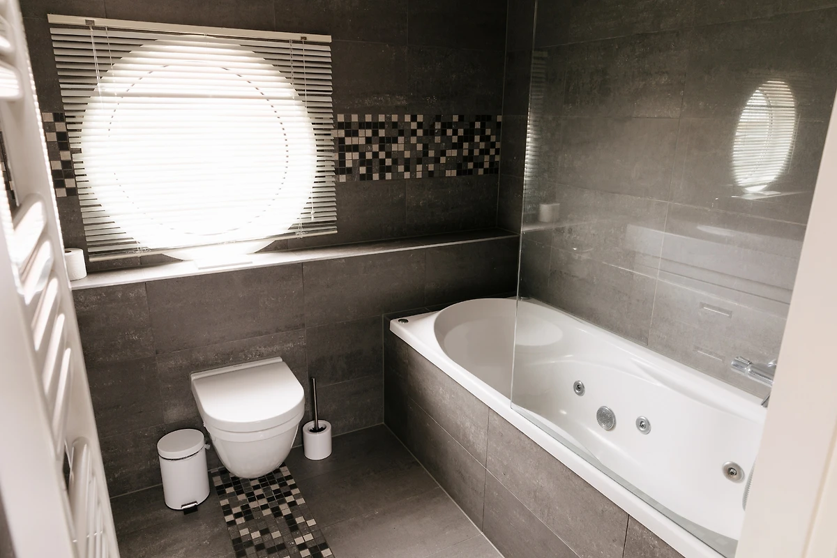 Eveneens op de bovenverdieping: een moderne badkamer en een privé sauna die voor extra ontspanning zorgt.