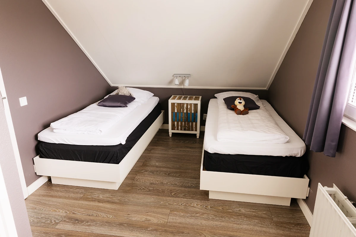 Tweede slaapkamer met drie eenpersoonsbedden (elk 90 x 200 cm) – ideaal voor kinderen of meereizende vrienden