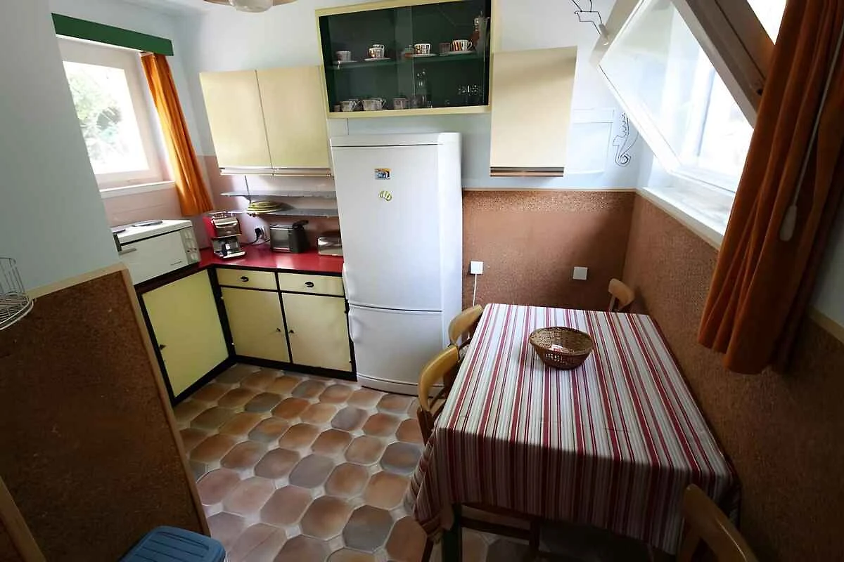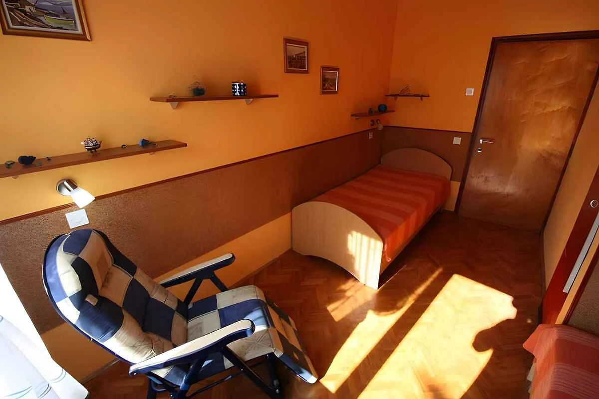 Ligging: Crikvenica, 25 m boven de zeespiegel. Het vrijstaand en in 1968 gebouwde vakantiehuis is rustiek ingericht. Het grondstuk is aan de rand van de plaats. Deze plaats is populair vanwege het uitzicht op de zee en het ligt op een rustige en zonnige plek. De toegangsweg naar het terrein gaat via een geasfalteerde zijstraat of bergstraat. Bij het vakantiehuis is U 1 parkeerplaats voor een auto op het perceel beschikbaar. Openbare parkeerplaatsen zijn op de straat voor het huis. De dichtsbijzijnde winkels zijn op 100 m afstand, restaurant 500 m en centrum 1000 m. sauna in 1400 m. bioscoop in 1500 m. overdekt zwembad in 21,8 km. Crikvenica: bank 1000 m en discotheek, dokter, apotheek elk 1500 m. vliegveld in Omisalj 25 km. station in Rijeka 35 km. Een kinderspeelplaats op 300 m afstand. hoofdweg 1000 m.