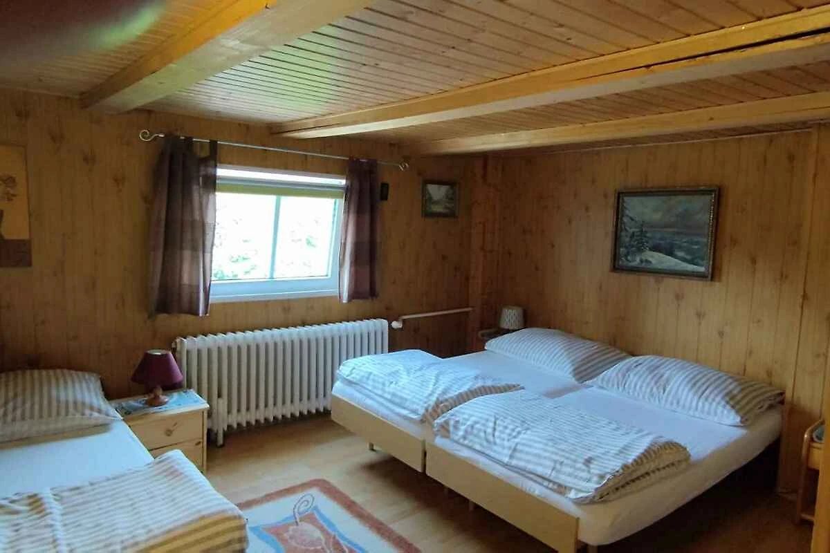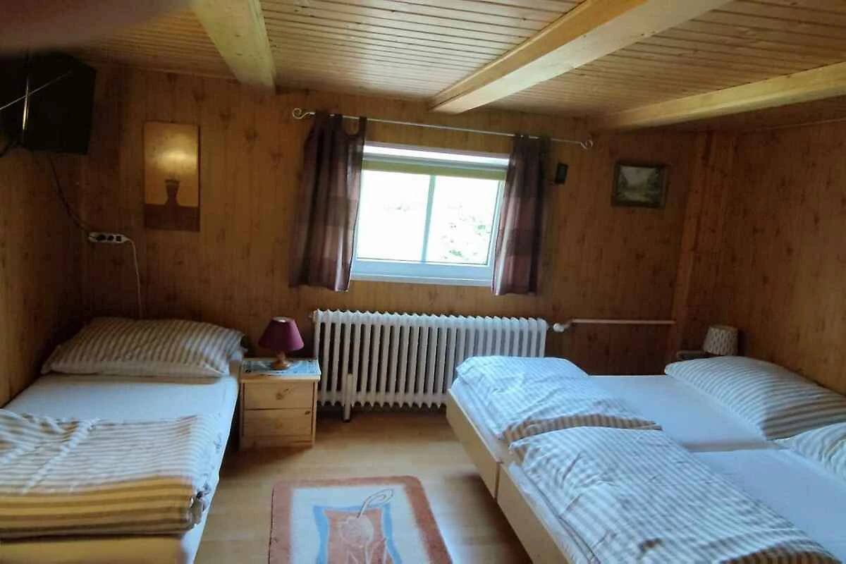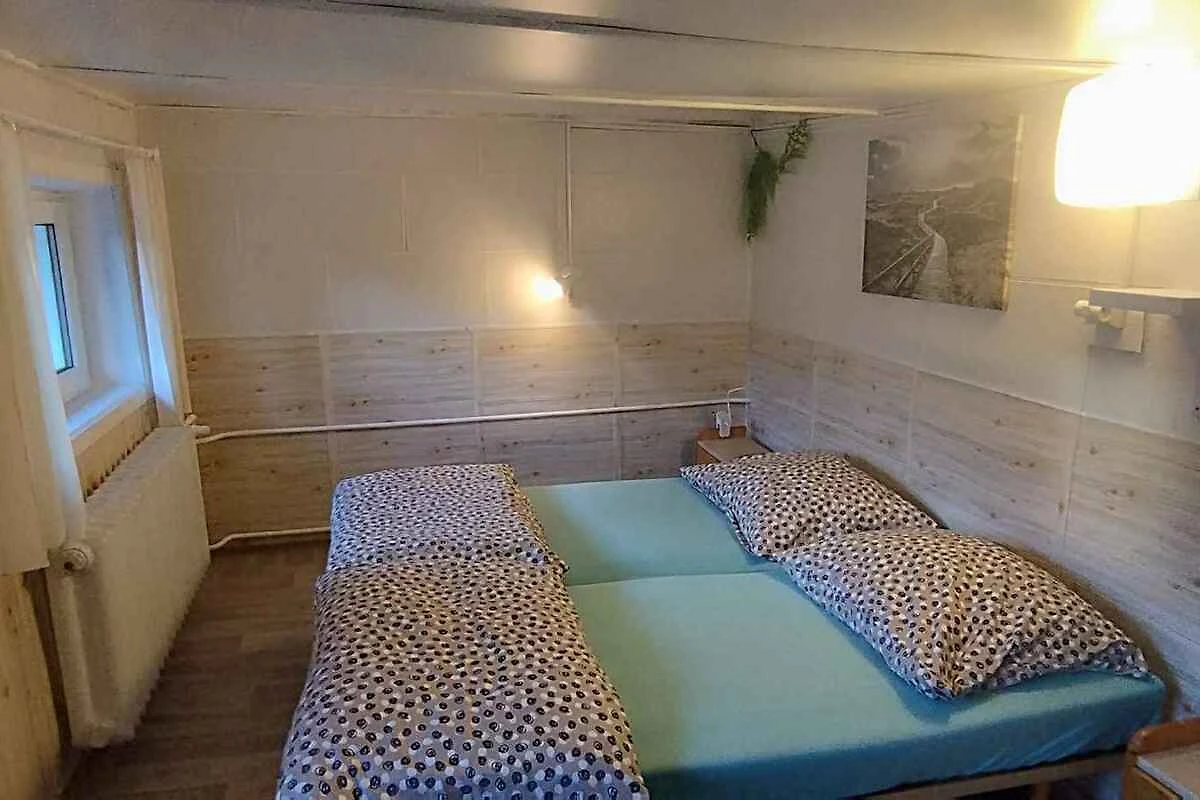 Ligging: Tanvald, 560 m boven de zeespiegel. De vrijstaand, in 1930 gebouwde en in 2007 gerenoveerde berghut is in lokale stijl ingericht. Deze plaats is populair vanwege het uitzicht op het panorama en het ligt aan de bosrand op een rustige en zonnige plek. Alleen kleine hondenrassen gewenst De 400 m lange toegangsweg naar het terrein gaat via een geasfalteerde zijstraat. In de winter zijn sneeuwkettingen aan te raden. Bij de berghut zijn U 8 parkeerplaatsen voor meerdere auto's op het perceel beschikbaar. De dichtsbijzijnde winkels zijn op 2 km afstand, restaurant 1500 m en centrum 2 km. vliegveld in Praag 99 km. Tanvald: station 1500 m en discotheek, bioscoop, dokter, apotheek, bank elk 500 m. Een kinderspeelplaats op 10 m afstand. spoorlijn 500 m en hoofdweg 300 m.