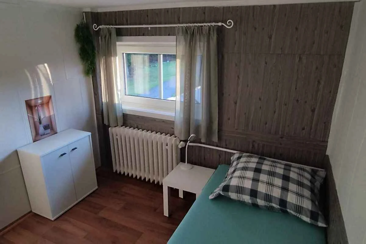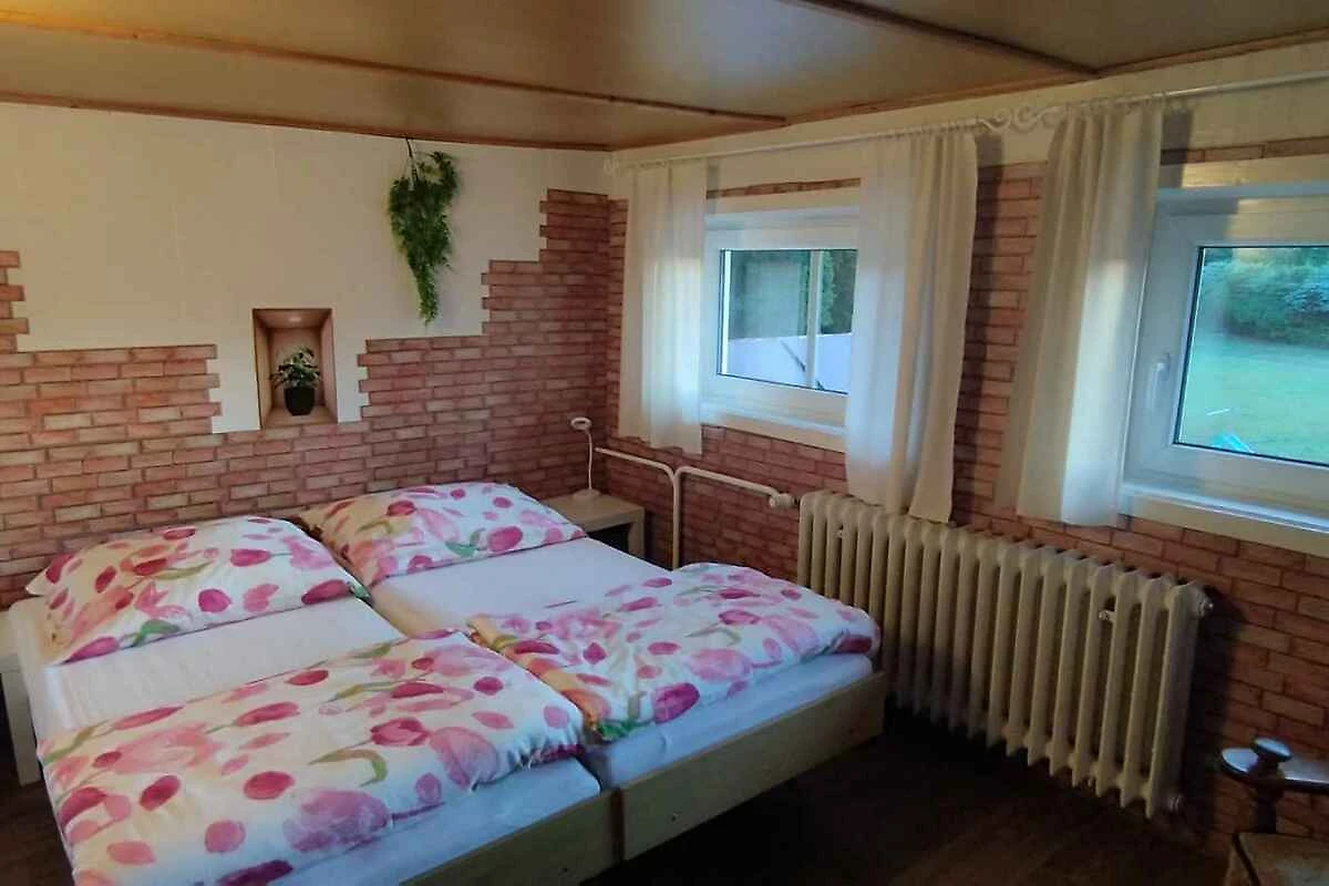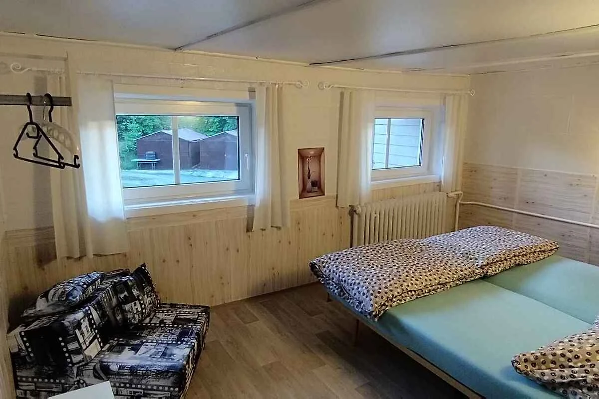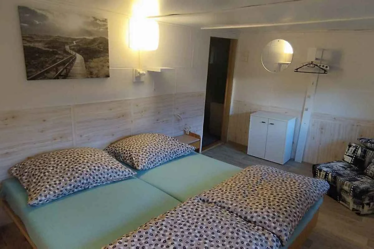 Ligging: Tanvald, 560 m boven de zeespiegel. De vrijstaand, in 1930 gebouwde en in 2007 gerenoveerde berghut is in lokale stijl ingericht. Deze plaats is populair vanwege het uitzicht op het panorama en het ligt aan de bosrand op een rustige en zonnige plek. Alleen kleine hondenrassen gewenst De 400 m lange toegangsweg naar het terrein gaat via een geasfalteerde zijstraat. In de winter zijn sneeuwkettingen aan te raden. Bij de berghut zijn U 8 parkeerplaatsen voor meerdere auto's op het perceel beschikbaar. De dichtsbijzijnde winkels zijn op 2 km afstand, restaurant 1500 m en centrum 2 km. vliegveld in Praag 99 km. Tanvald: station 1500 m en discotheek, bioscoop, dokter, apotheek, bank elk 500 m. Een kinderspeelplaats op 10 m afstand. spoorlijn 500 m en hoofdweg 300 m.