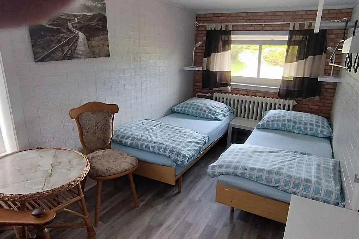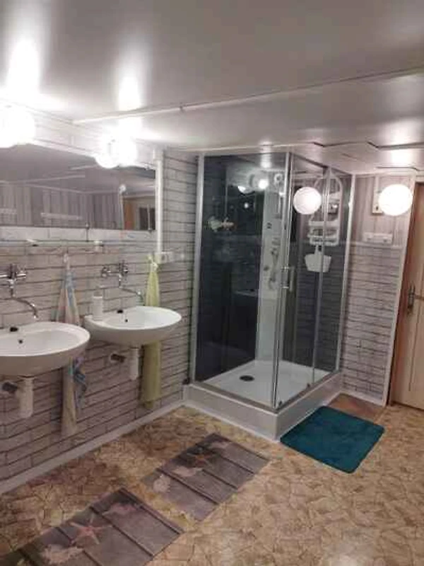 2.verdieping: 2 slaapkamer elk 20 m² groot en met 1 tweepersoonsbed en 1 éénpersoonsbed en zithoek. badkamer met douche en 2 wastafels.