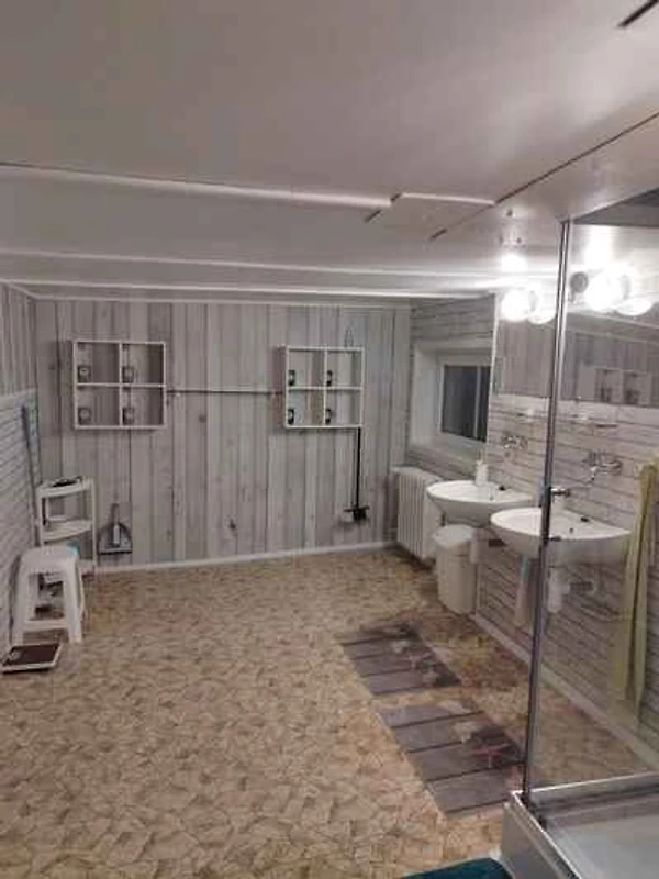 begane grond: recreatieruimte als doorgangskamer, 50 m² groot en met tegelkachel, zithoek, eethoek, TV en DVD. De eethoek heeft plaats voor 32 personen. keuken 20 m² groot en met eethoek, afwasmachine, gasfornuis (4 pitten), elektrisch fornuis (keramische kookplaat, 4 kookplaat), bakoven, afzuigkap, koelkast (400 l, vriesvak), magnetron, koffiemachine, broodrooster en elektrische waterkoker. De eethoek heeft plaats voor 6 personen. aparte WC met douche, 2 wastafels en WC.