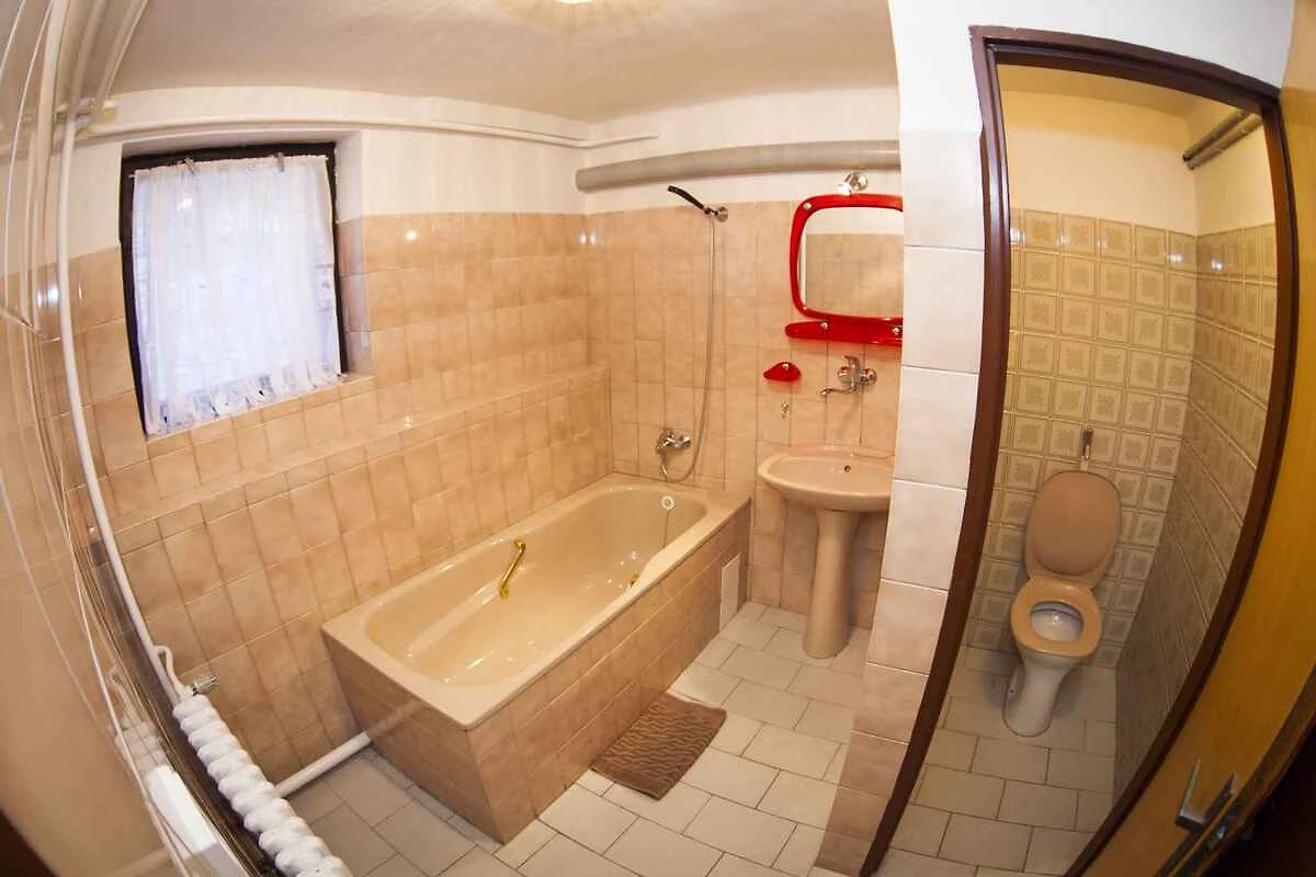 Ligging: Benecko, 700 m boven de zeespiegel. Het vakantiehuis is twee-onder-één-kap en functioneel ingericht. Het grondstuk is aan de rand van de plaats. Deze plaats is populair vanwege het uitzicht op de bossen en het ligt op een rustige, zonnige en afgescheiden plek. De 2000 m lange toegangsweg naar het terrein gaat via een geasfalteerde zijstraat. In de winter zijn sneeuwkettingen absoluut noodzakelijk. Bij het vakantiehuis zijn U 4 parkeerplaatsen voor meerdere auto's op het perceel beschikbaar. De dichtsbijzijnde winkels zijn op 2 km afstand, restaurant 100 m en centrum 2 km. overdekt zwembad, sauna elk 10 km in Jilemnice. Bar met bowling 1km.