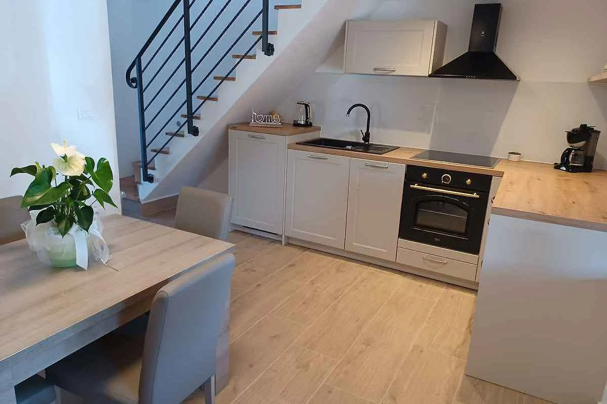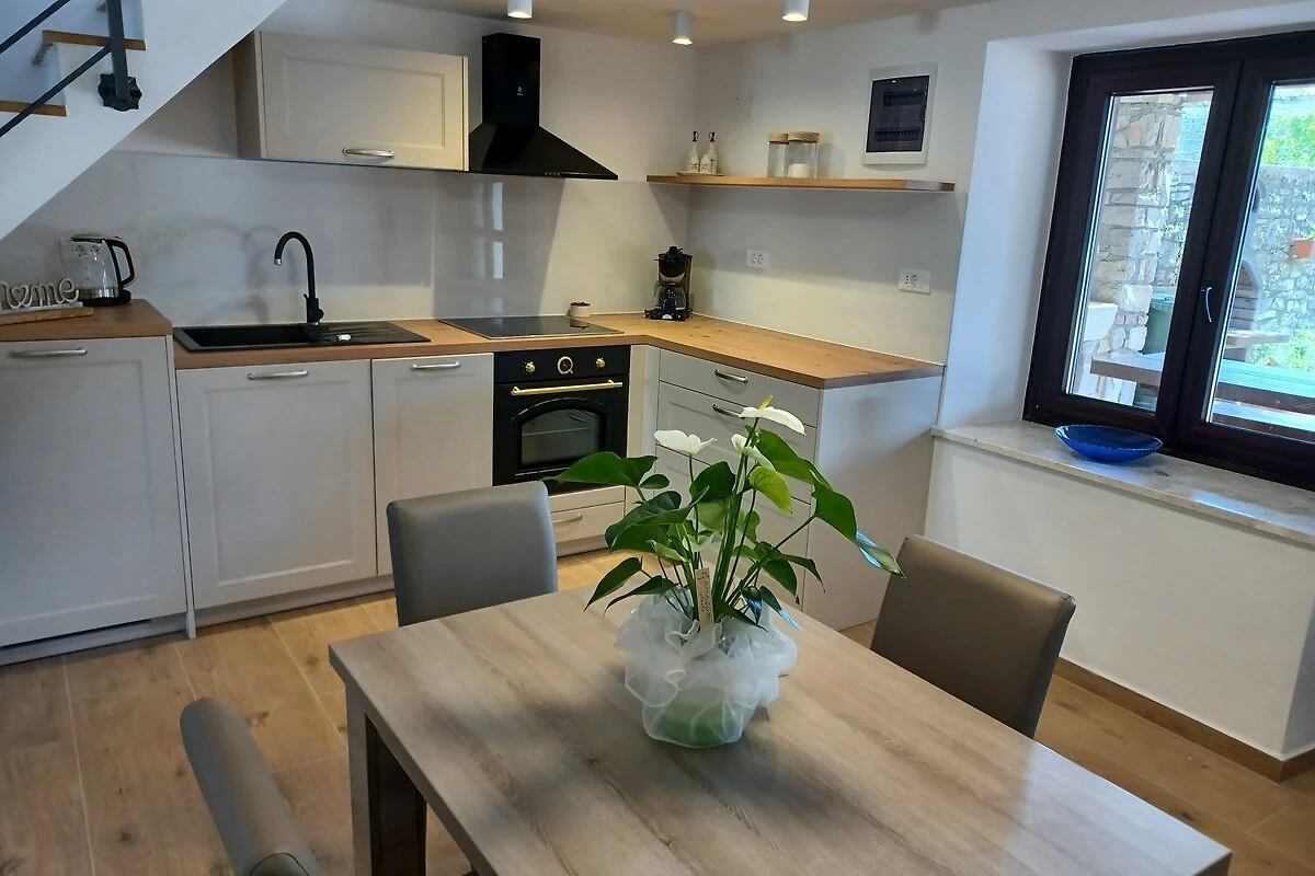 Ligging: Barban, wijk Orihi. De vakantiewoning ligt in een in 1937 gebouwde rijtjeshuis, is in het jaar 2022 gerenoveerd en is in lokale stijl ingericht. Het grondstuk is in een drukke omgeving aan de rand van de plaats. De toegangsweg naar het terrein gaat via een geasfalteerde hoofdweg. Bij het huis zijn U 2 parkeerplaatsen voor meerdere auto's op het perceel beschikbaar. De dichtsbijzijnde winkels zijn op 100 m afstand, restaurant 6 km en centrum 6 km. Pula: station 28 km en vliegveld 30 km.