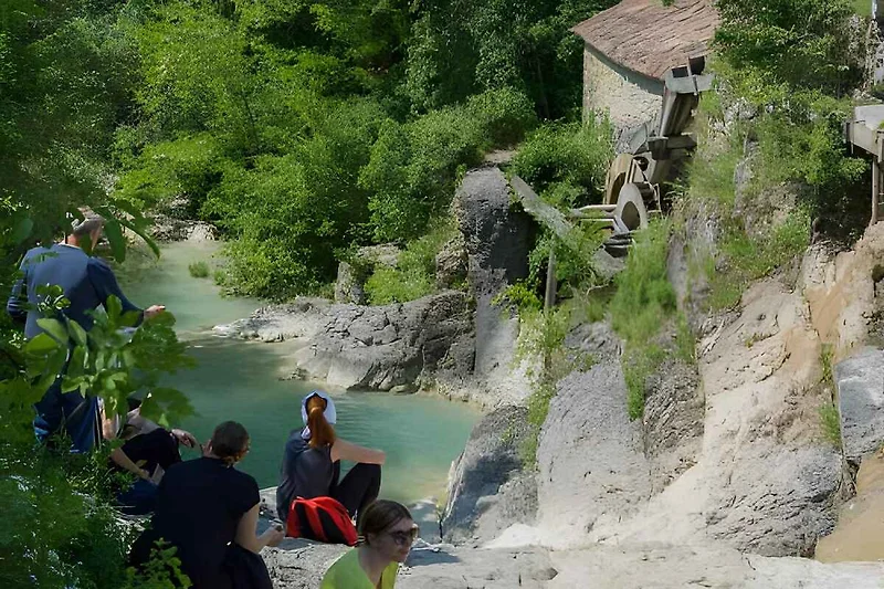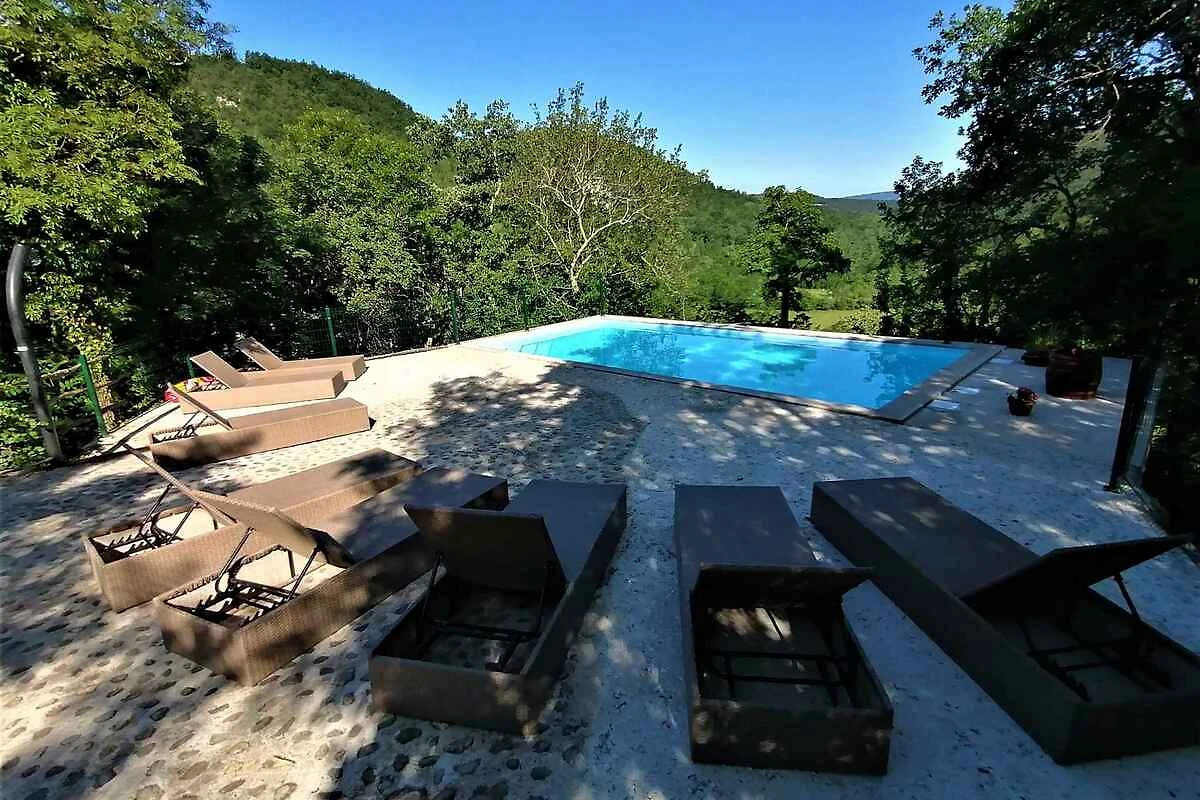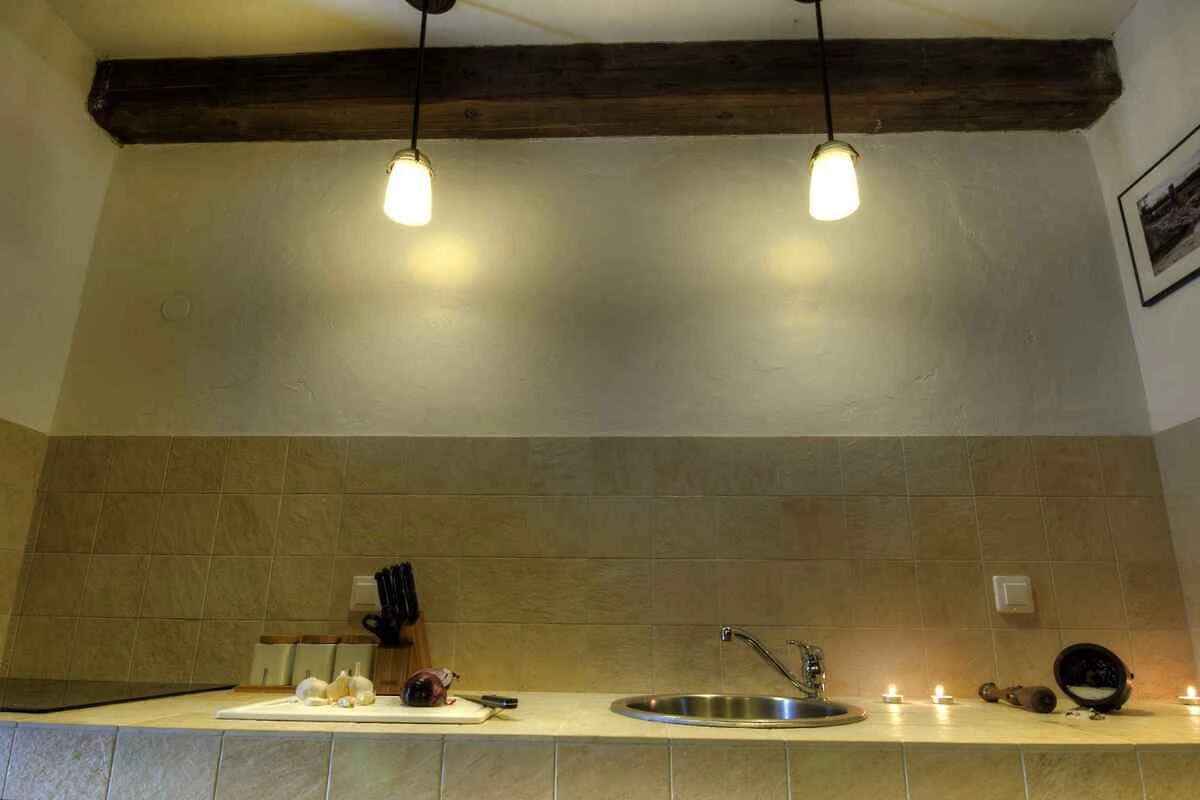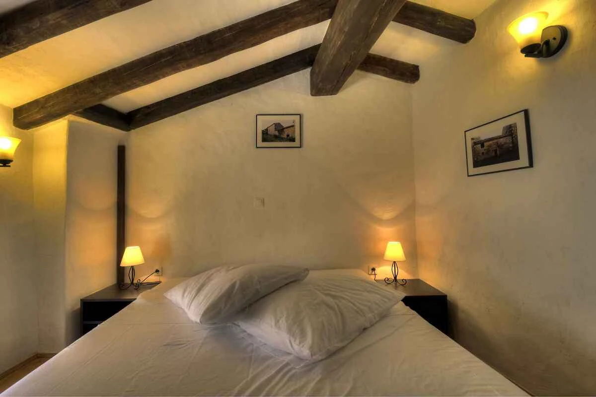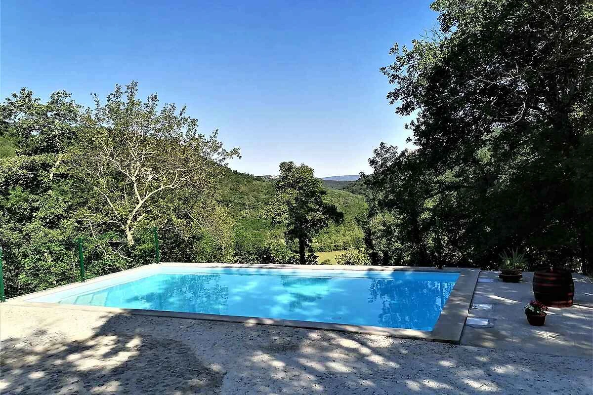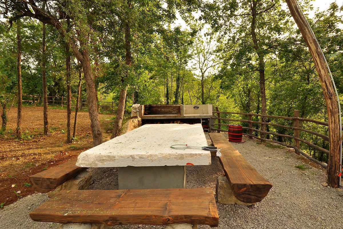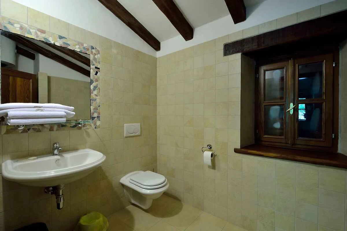 Ligging: Buzet, wijk Kotli. Het in 1900 gebouwde en in 2015 gerenoveerde vakantiehuis is een rijtjeshuis en rustiek ingericht. Deze plaats is populair vanwege het uitzicht op de bossen en het ligt aan de bosrand en bij het water op een rustige en afgescheiden plek. Het is een plaats die vermeld staat onder de bescherming van landelijk erfgoed en de reden waarom de hele plaats onverhard is. Mirna (is een rivier) stroomt door het dorp. Hun kleine watervallen produceren stenen die een ketelvormig gat in de rots vormen, vandaar de naam van het dorp "Kessel" (Kessel) (ontleend aan de rotsen, Kroatisch-nazi selo Kotli (kotao) De toegangsweg naar het terrein gaat via een geasfalteerde onverharde zijstraat. Bij het vakantiehuis zijn parkeerplaatsen op het perceel beschikbaar. Openbare parkeerplaatsen zijn op de straat voor het huis. De dichtsbijzijnde winkels zijn op 4 km afstand, restaurant 100 m en centrum 10 km. discotheek, dokter, apotheek, bank elk 10 km in Buzet. vliegveld in Pula 75 km.