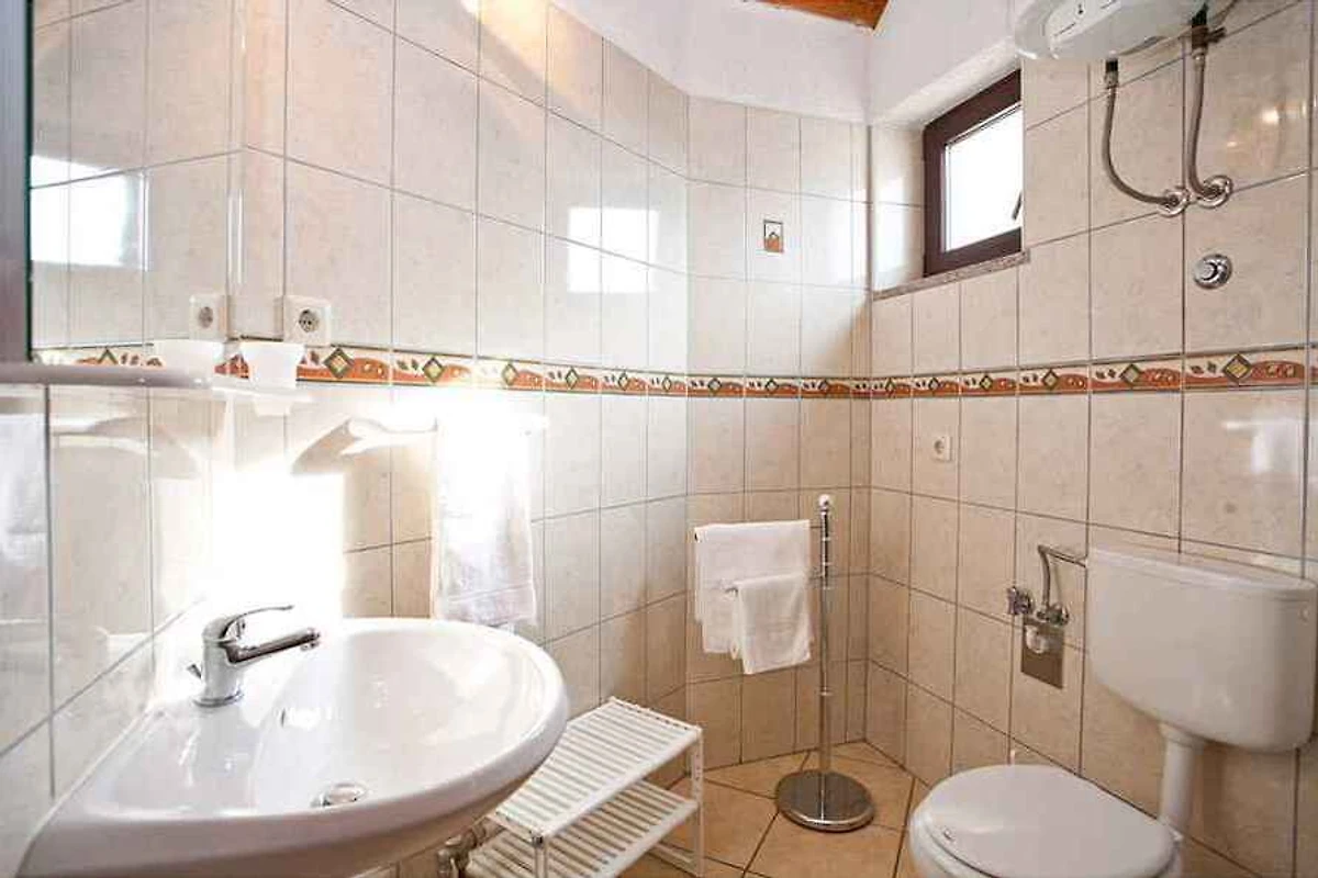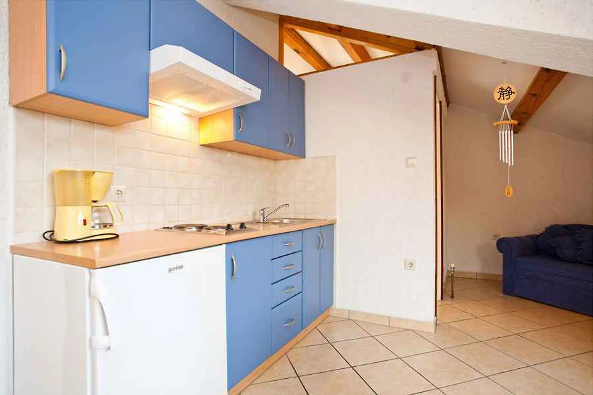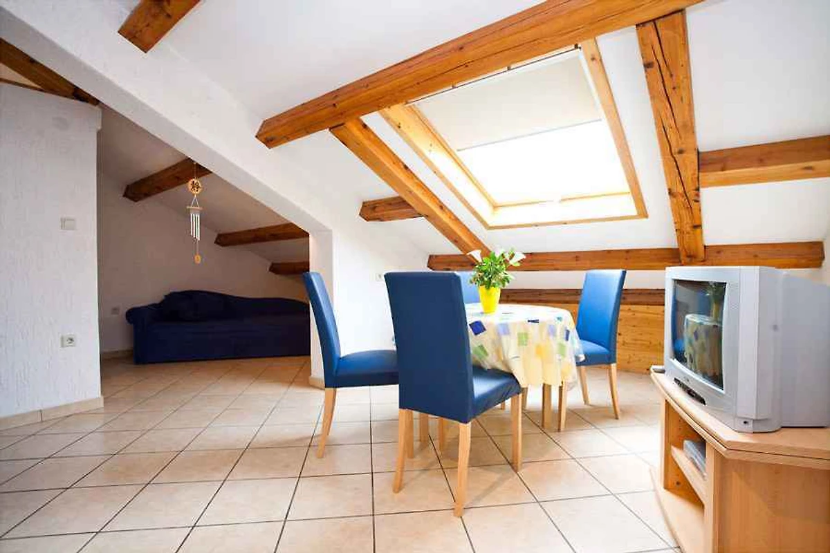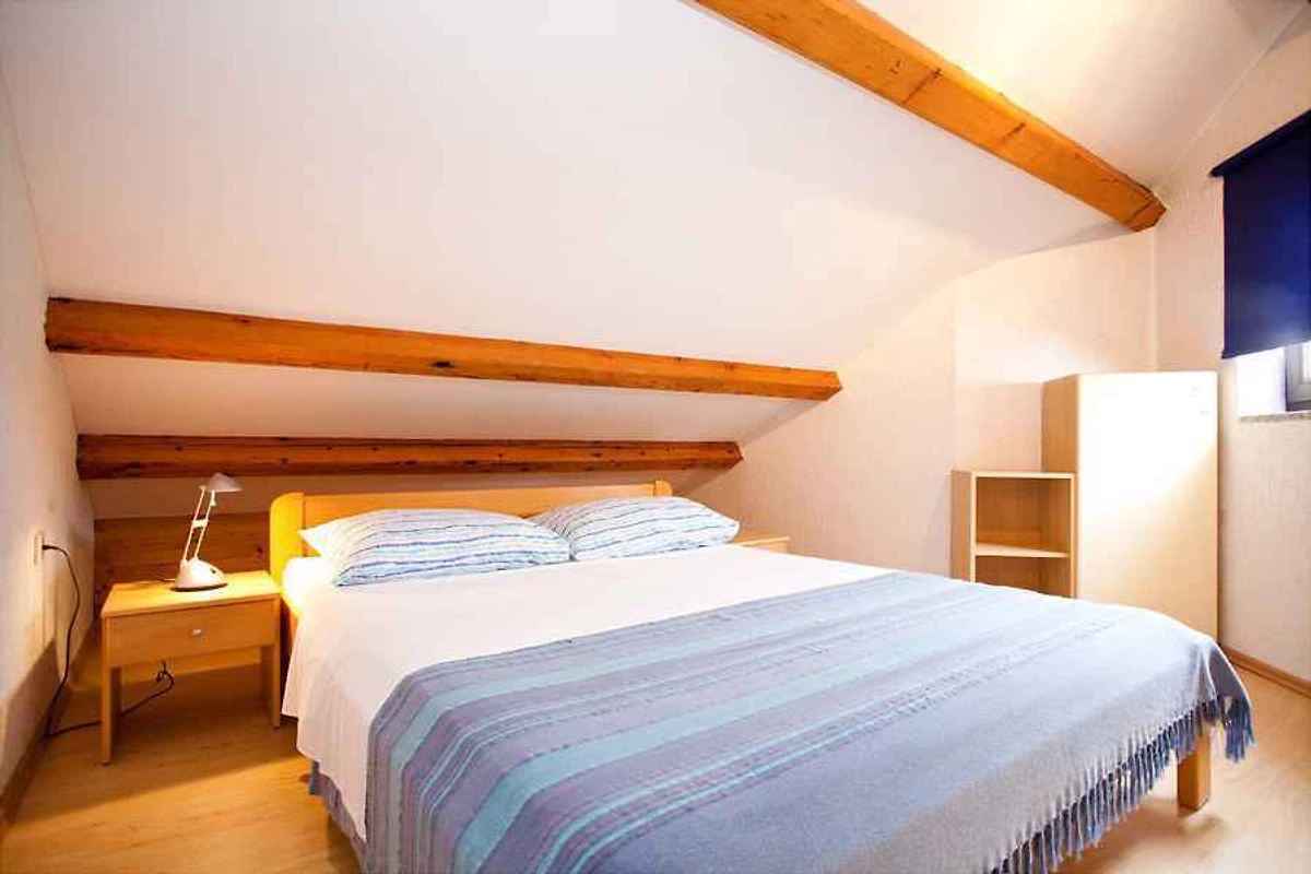 Ligging: Punat. De vakantiewoning ligt is in het jaar 2005 gerenoveerd en is functioneel ingericht. Het grondstuk is in een drukke omgeving in een woongebied in het centrum. Deze plaats is populair vanwege het uitzicht op de zee. De toegangsweg naar het terrein gaat via een geasfalteerde zijstraat. Bij het huis zijn U 3 parkeerplaatsen voor meerdere auto's op het perceel beschikbaar. De dichtsbijzijnde winkels zijn op 150 m afstand, restaurant 2 m en centrum 150 m. vliegveld in Omisalj 25 km. Punat: dokter 300 m en apotheek, bank elk 400 m. station in Rijeka 65 km. Een kinderspeelplaats op 150 m afstand. hoofdweg 100 m.