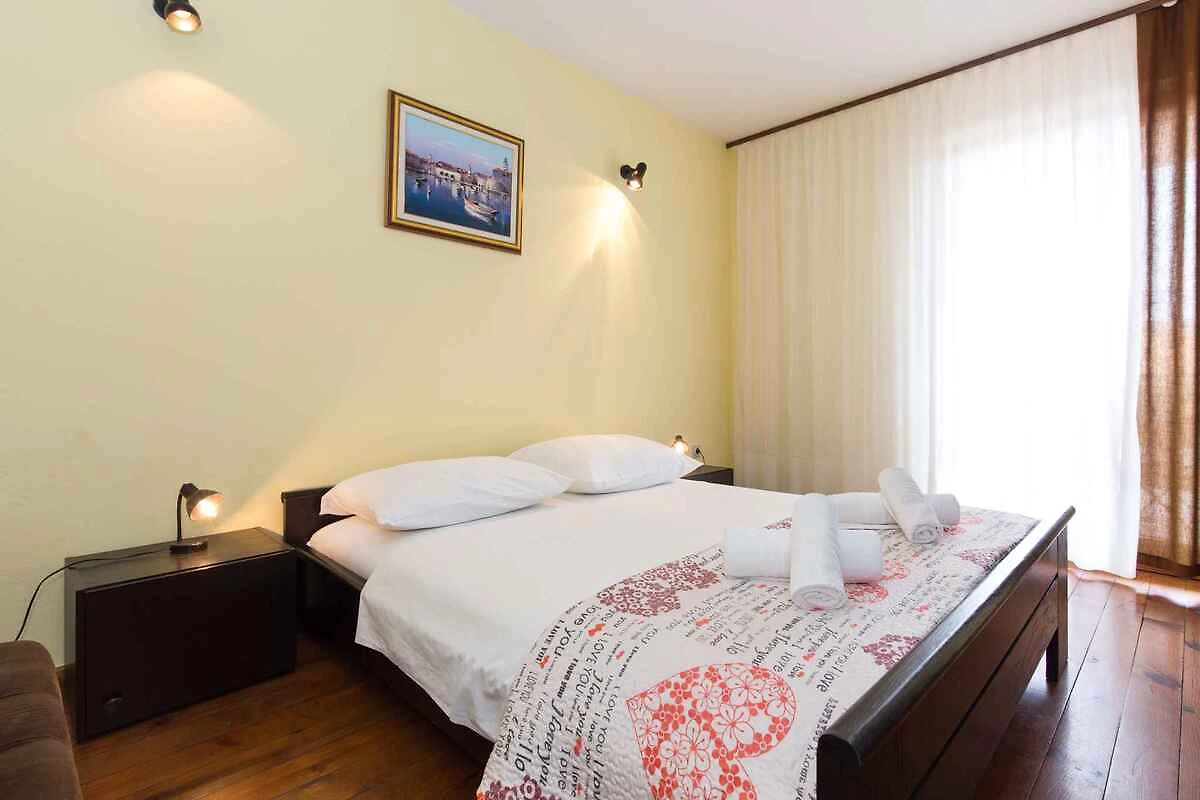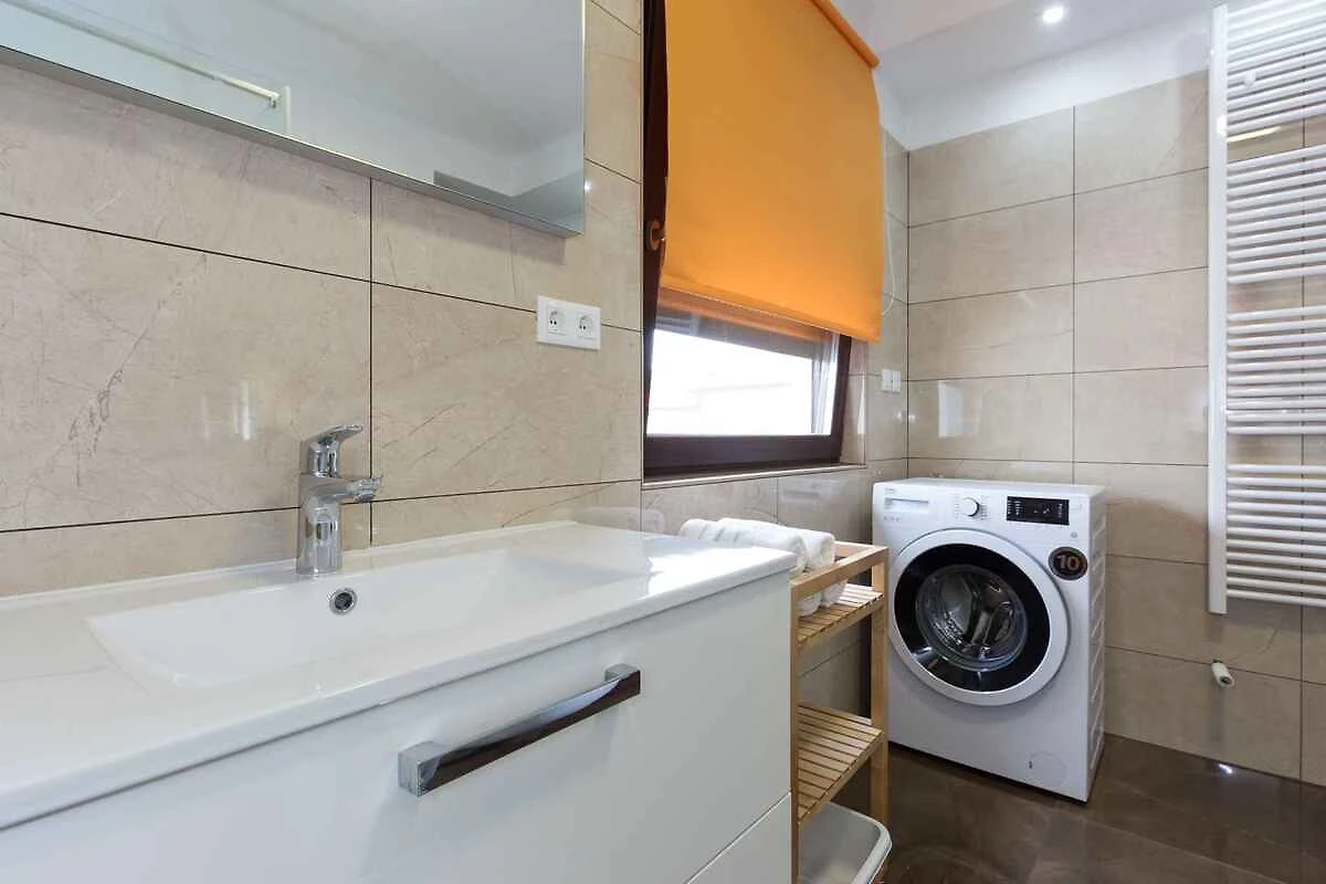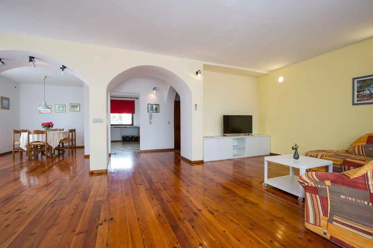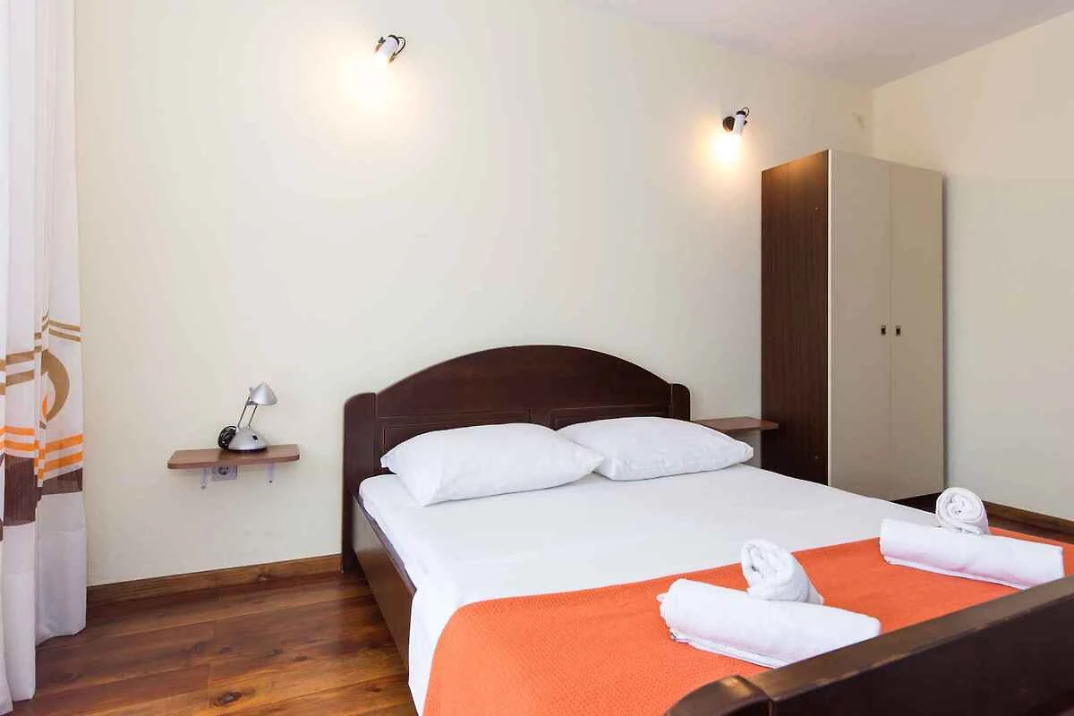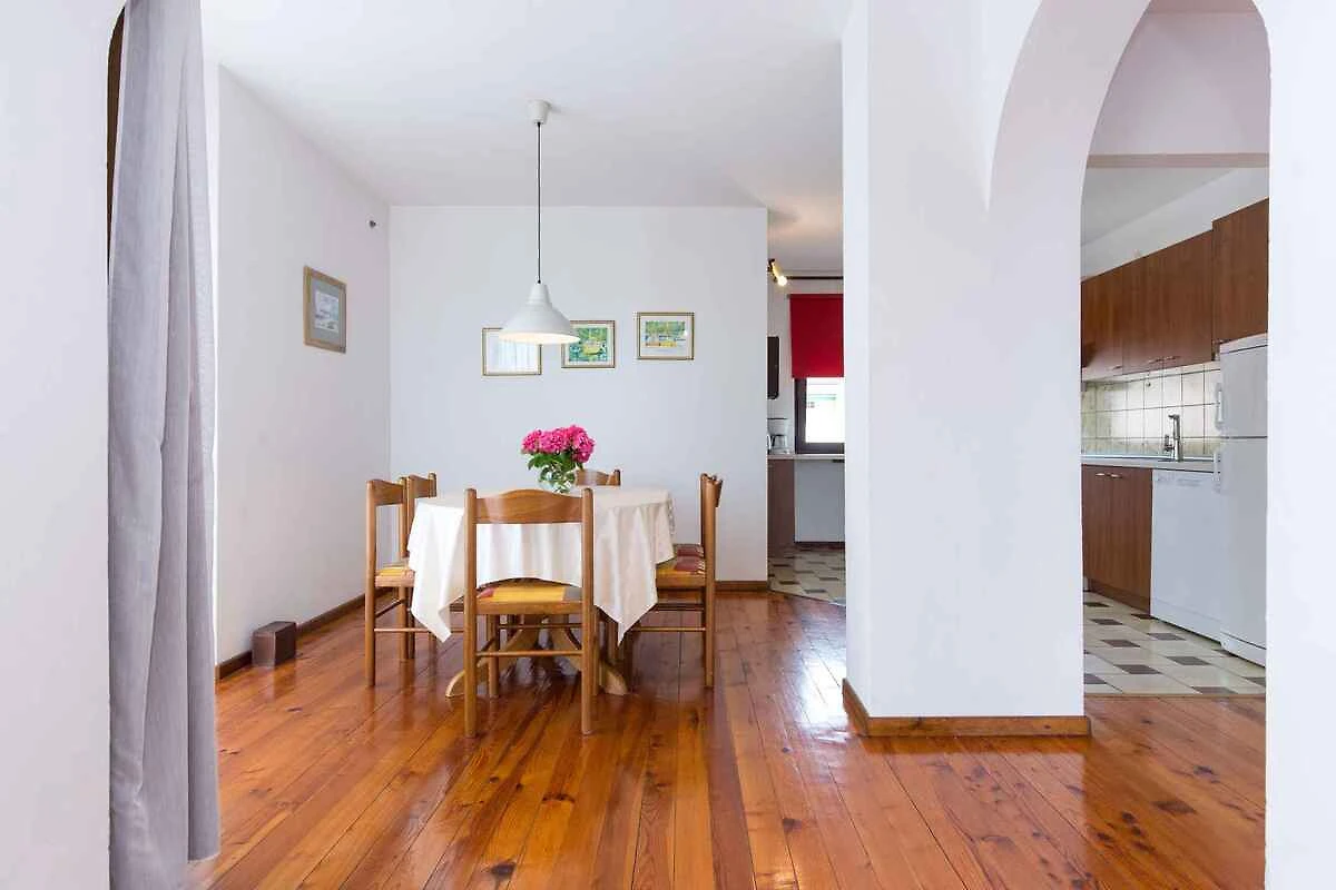 Ligging: Punat. De vakantiewoning ligt in een vrijstaand éénsgezinswoning, is in het jaar 2005 gerenoveerd en is functioneel ingericht. Het grondstuk is in een drukke omgeving in een woongebied in het centrum. Deze plaats is populair vanwege het uitzicht op de zee. Op de begane grond is het restaurant / pizzeria "Zoals Janos". De toegangsweg naar het terrein gaat via een geasfalteerde zijstraat. Bij het huis zijn U 3 parkeerplaatsen voor meerdere auto's op het perceel beschikbaar. De dichtsbijzijnde winkels zijn op 150 m afstand, restaurant 1 m en centrum 150 m. vliegveld in Omišalj 30 km. apotheek, bank elk 500 m in Punat. station in Rivier 65 km.