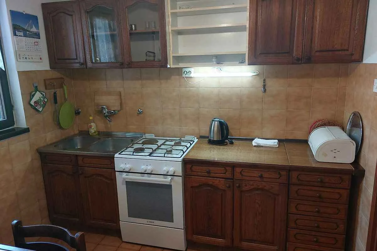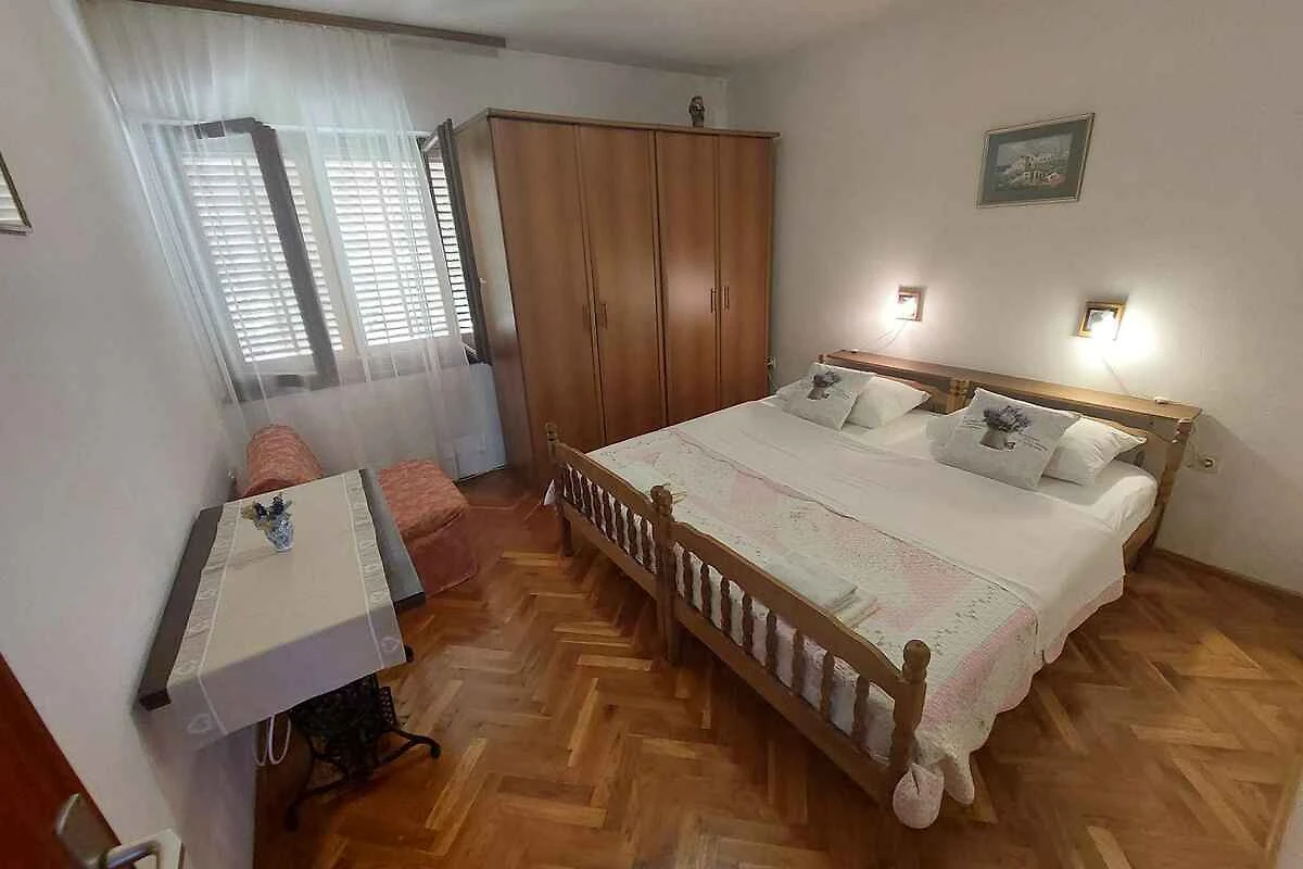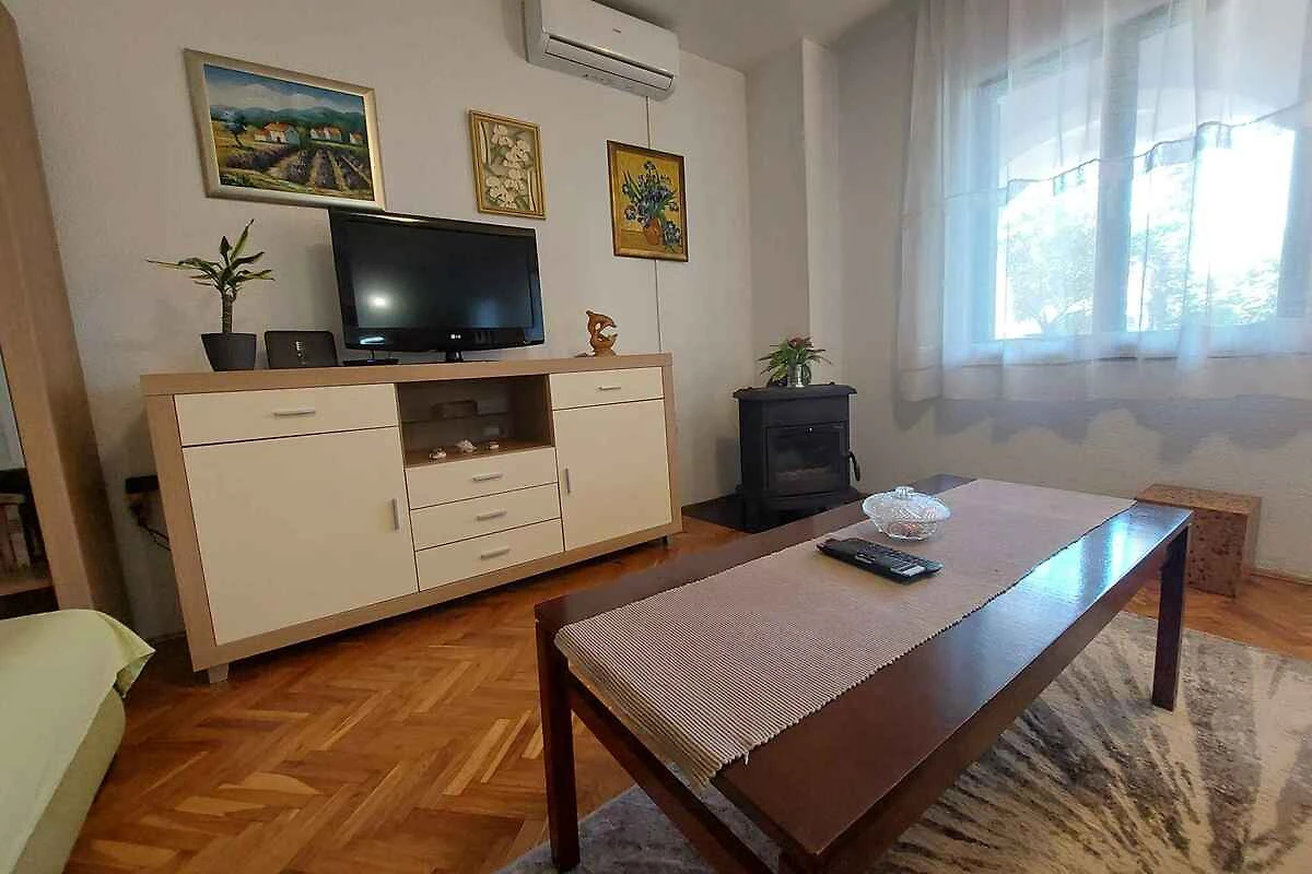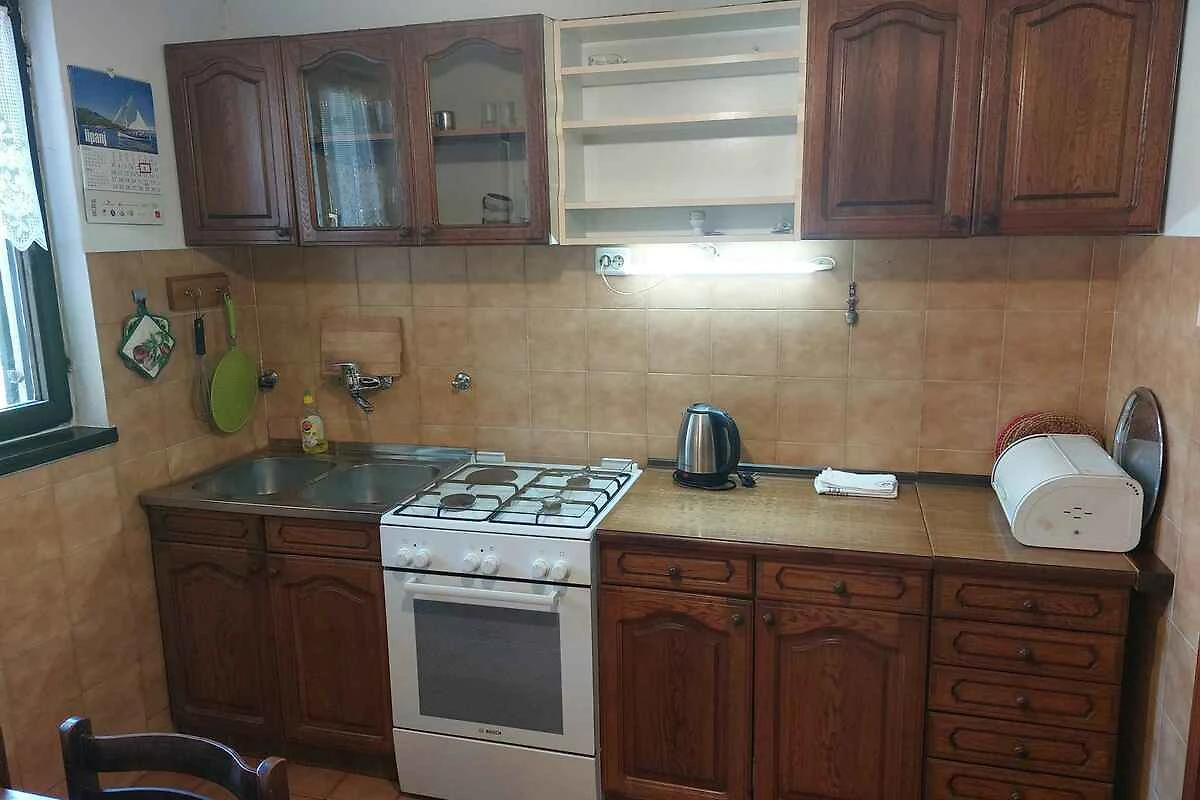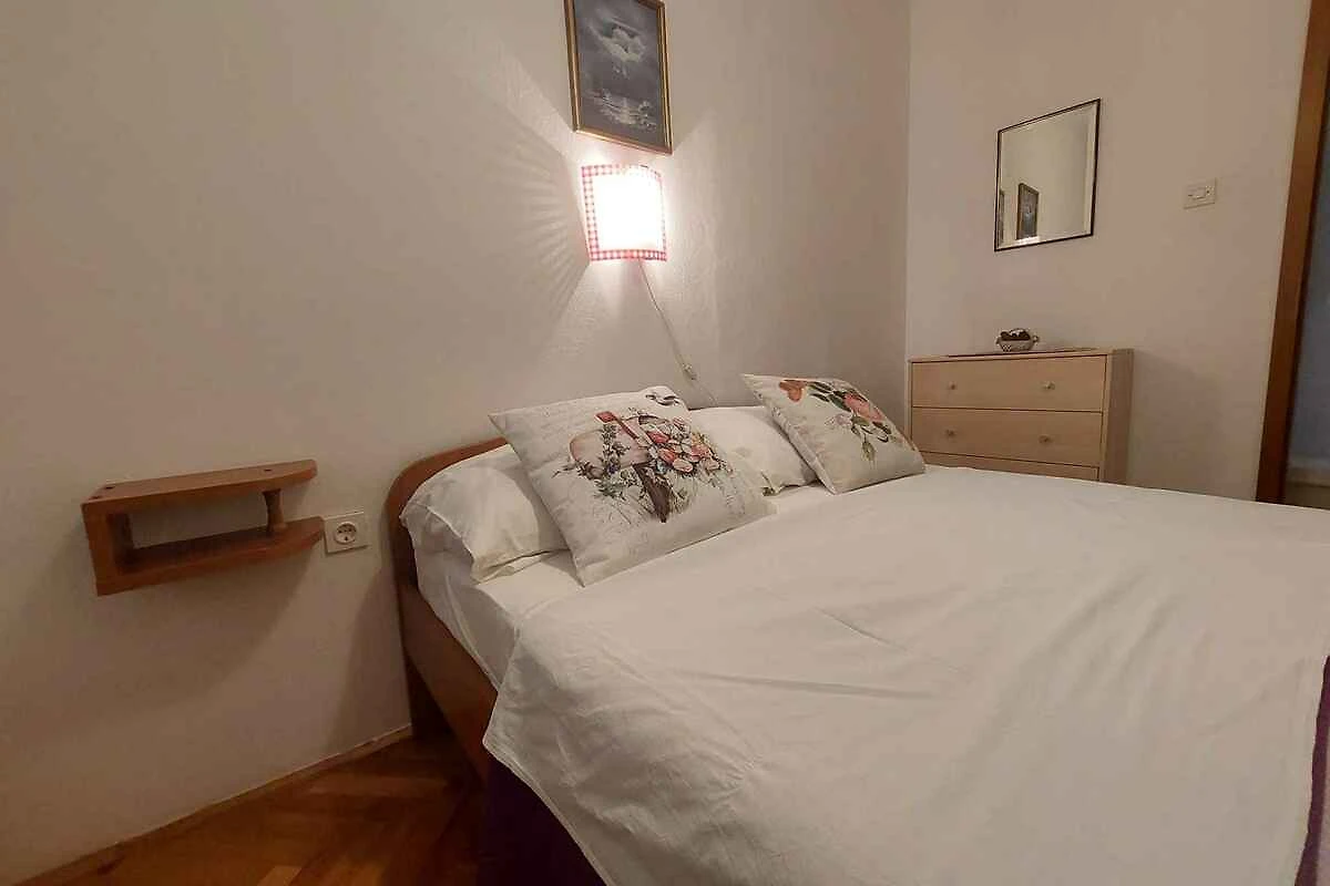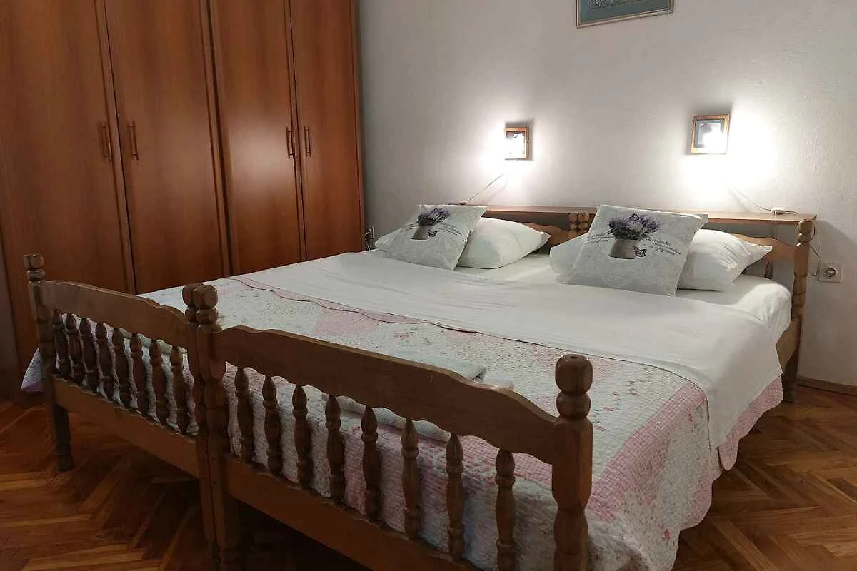 Ligging: Malinska. De vakantiewoning ligt in een éénsgezinswoning en is functioneel ingericht. Het grondstuk is in een woongebied. Deze plaats is populair vanwege het ligt op een rustige plek. Bij het huis zijn U 2 parkeerplaatsen voor meerdere auto's op het perceel beschikbaar. De dichtsbijzijnde winkels zijn op 300 m afstand en restaurant 550 m. thermaal bad in 100 m. overdekt zwembad, bioscoop elk 11 km. discotheek in 17 km. station in 18,8 km. dokter, bank elk 23,8 km. apotheek in 500 m. sauna in 700 m. vliegveld in Rijeka 13 km. Een kinderspeelplaats op 300 m afstand.