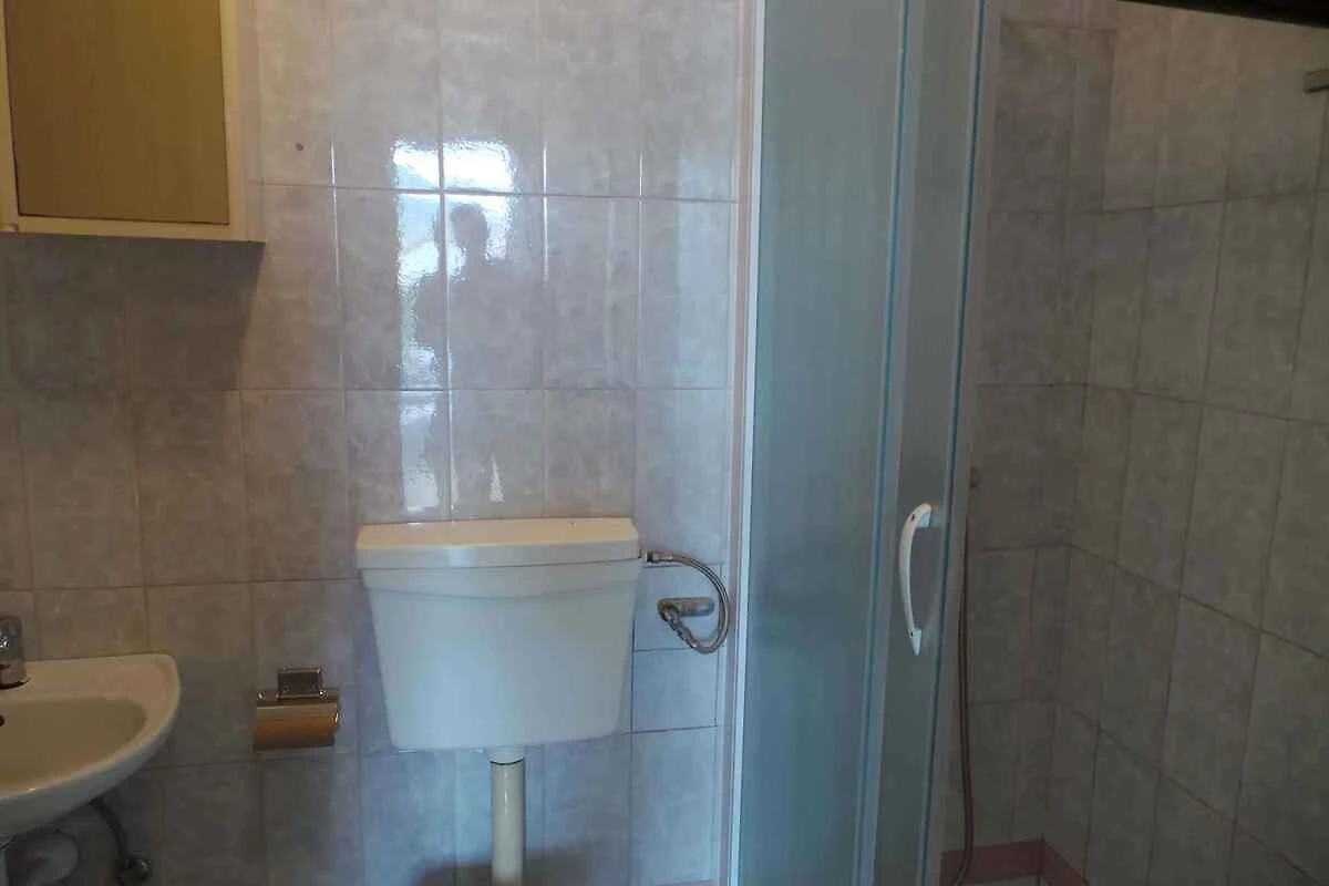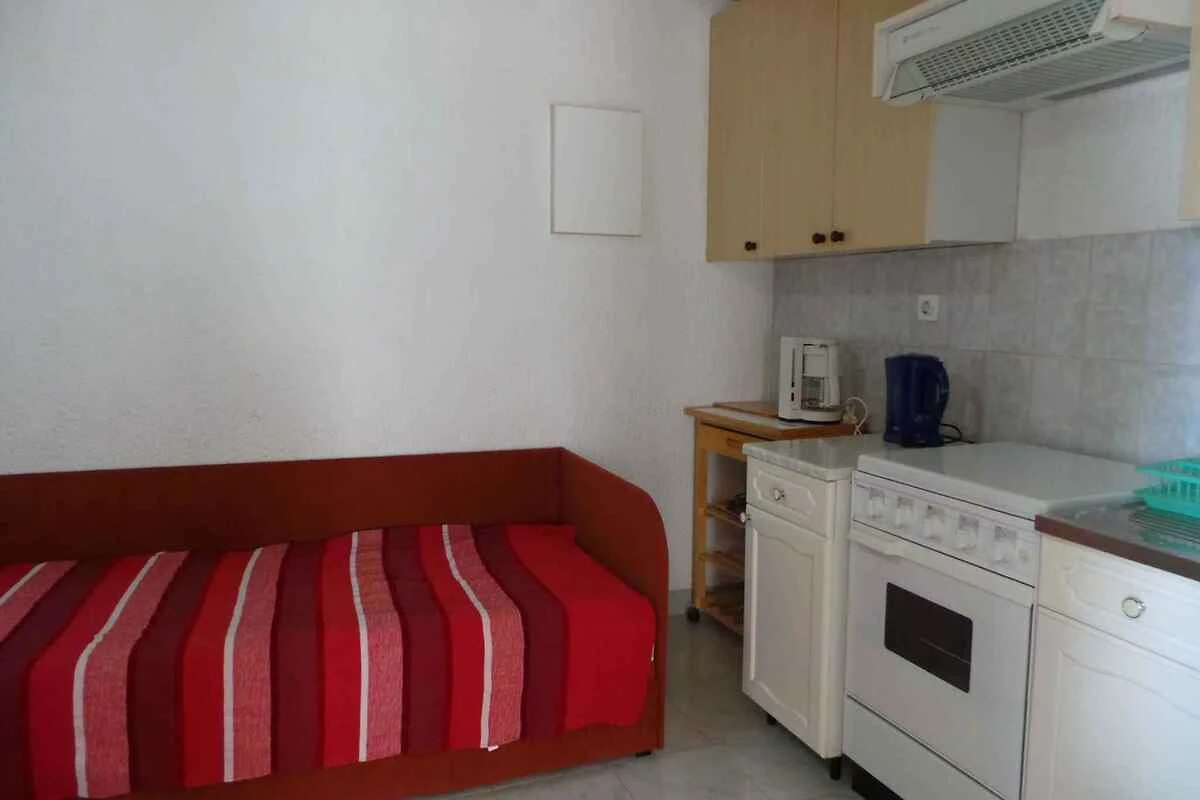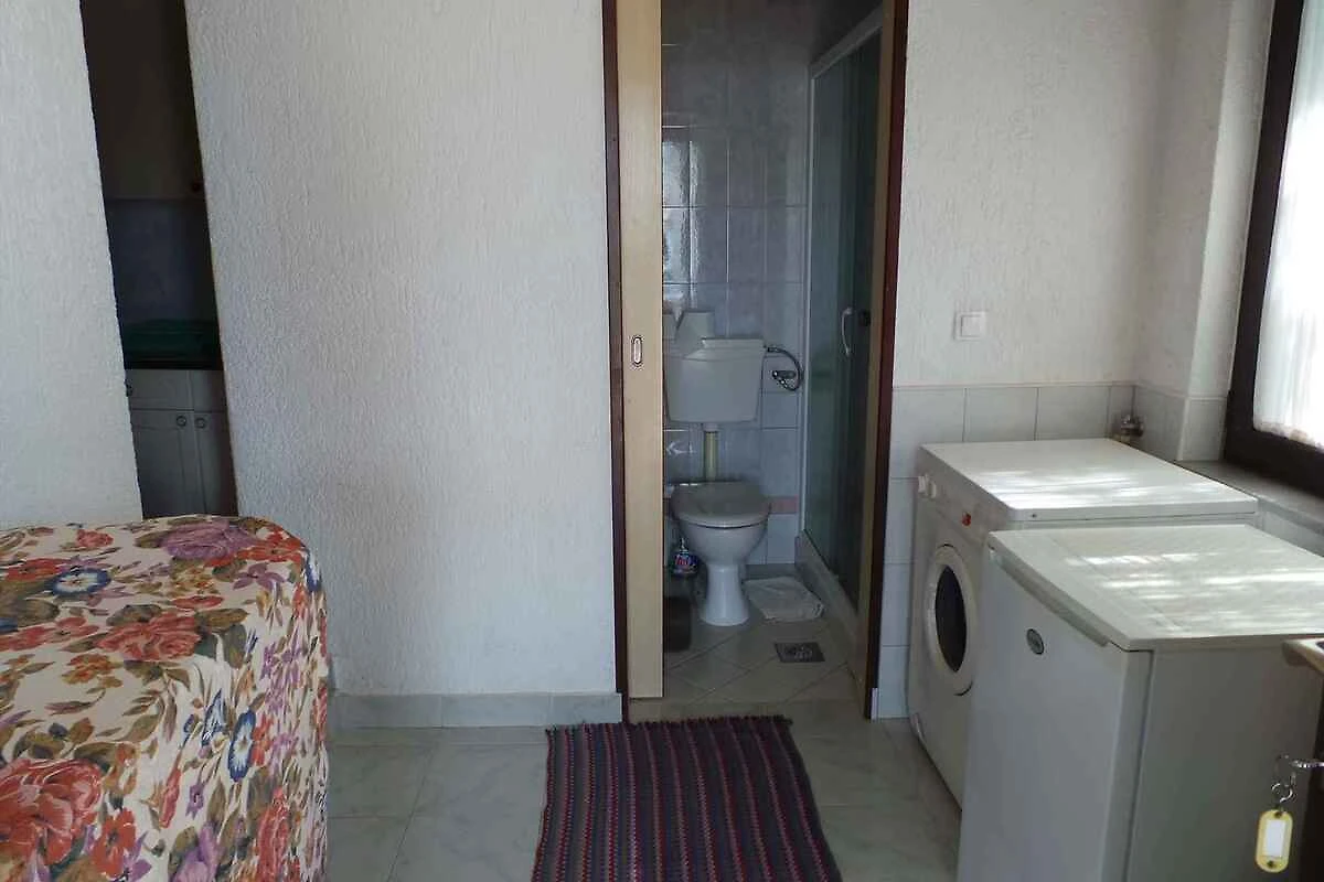 Uw vakantiewoning: Uw vakantiewoning beslaat 1 verdieping, 2 kamers (daarvan 1 slaapkamer), is 30 m² groot en is geschikt voor maximaal 4 personen. Een airconditioning zorgt op hete dagen voor een aangename temperatuur. De ingang is im Erdgeschoss en leidt via een buitentrap direct in de gang. In de hal is er een wasmachine en een koelkast. De indeling van de kamers is als volgt: woonkeuken met 2 extra bedden op slaapbank (alleen voor kinderen tot 12 jaar geschikt) en TV. slaapkamer met 1 tweepersoonsbed. kookhoek met gasfornuis (3 pitten), elektrisch fornuis (1 kookplaat), bakoven, afzuigkap, koelkast (vriesvak), koffiemachine en elektrische waterkoker. badkamer met douche, 1 wastafel en WC.