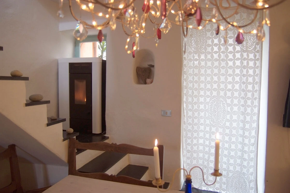 De keuken heeft een 4-pits gasfornuis, een koelkast, een espressomachine en een gootsteen. Aan de eettafel is plaats voor 8 - 10 personen. De badkamer is uitgerust met een douche, een wastafel, een bidet en een wc. In het koelere jaargetijde kan een gezellig haardvuur op aangename wijze lichaam en ziel verwarmen. Op het kleine terras met zeezicht kun je heerlijk ontspannen, van het ontbijt genieten, zonnen, of ’s avonds van een aperitief genieten.