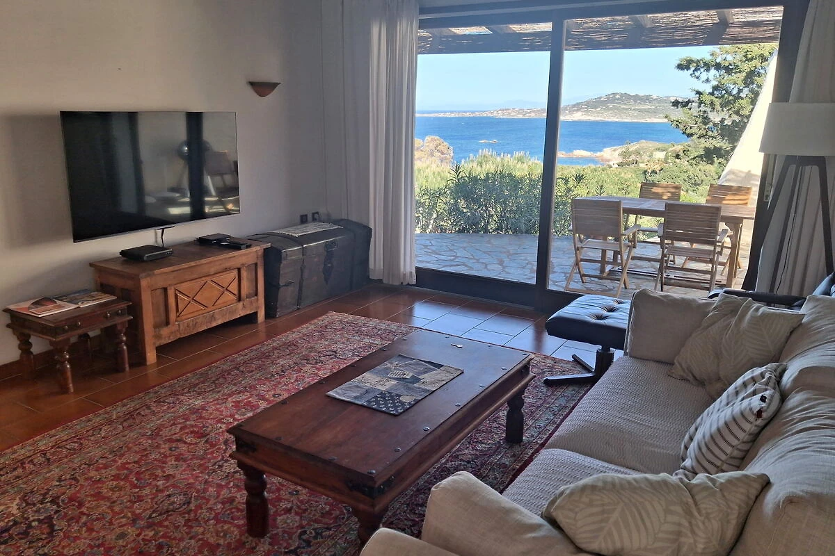 Het betreft een privé-vakantiehuis dat volledig is ingericht. Achter het huis, met uitzicht over de tuin op de baai van Algajola, bevindt zich een groot terras (ca. 40 m²); voor het huis is een tweede, kleinere en overdekte terras, beide zijn met natuursteen betegeld. Vanuit de woonkamer (29 m²) met grote terrasdeur, evenals de keuken en slaapkamer, komt men op het grote terras. Zowel op de beide terrassen als in de tuin staan voldoende tuinmeubelen en ligstoelen ter beschikking. Het hele huis is voorzien van tegelvloeren. Het huis beschikt over airconditioning (airco-units in de slaapkamers en woonkamer). Daarnaast zijn in beide slaapkamers plafondventilatoren aanwezig.