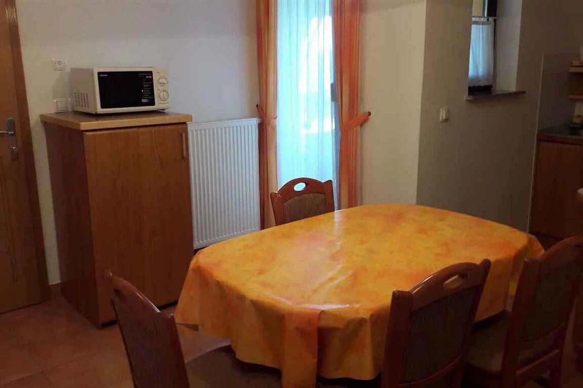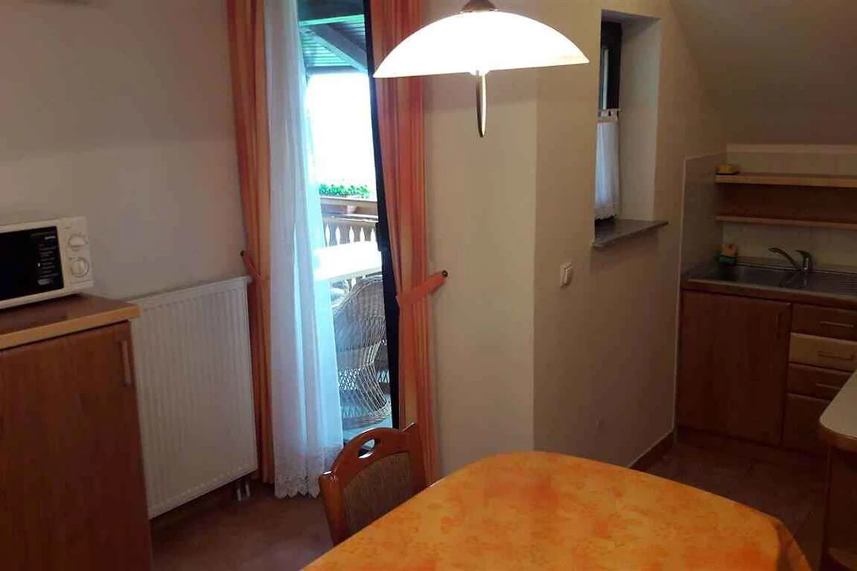 Ligging: Šmarješke Toplice. De studio ligt in een éénsgezinswoning en is in lokale stijl ingericht. Deze plaats is populair vanwege het ligt op een rustige plek. Bij het huis zijn parkeerplaatsen op het perceel beschikbaar. De dichtsbijzijnde winkels zijn op 1000 m afstand, restaurant 1000 m en centrum 1000 m. vliegveld in Brnik Ljubljana 70 km. station, bioscoop, dokter, apotheek, bank elk 11 km in Novo mesto. discotheek in Otočec 4 km. thermaal bad, overdekt zwembad, sauna elk 3 km in Šmarješke Toplice. Bus 1 km Touristeninformatie 2 km afstand. 3 km spa Smarjeske Toplice.