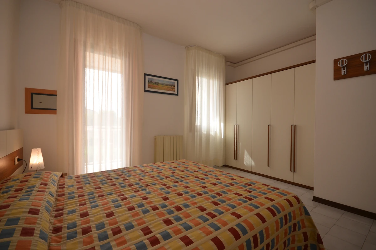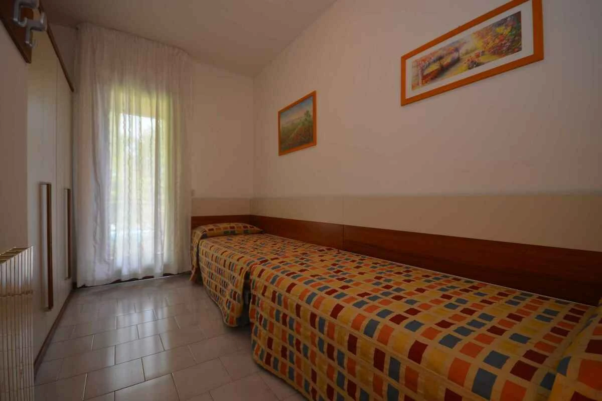 Ligging: Bibione, wijk Spiaggia. De vakantiewoning ligt in een rijtjeshuis en is functioneel ingericht. Het grondstuk is in een vakantiepark. Deze plaats is populair vanwege het ligt op een rustige plek. Bij het huis is U 1 parkeerplaats voor een auto op het perceel beschikbaar. De dichtsbijzijnde winkels zijn op 550 m afstand, restaurant 600 m en centrum 600 m. thermaal bad in Bibione 2 km.