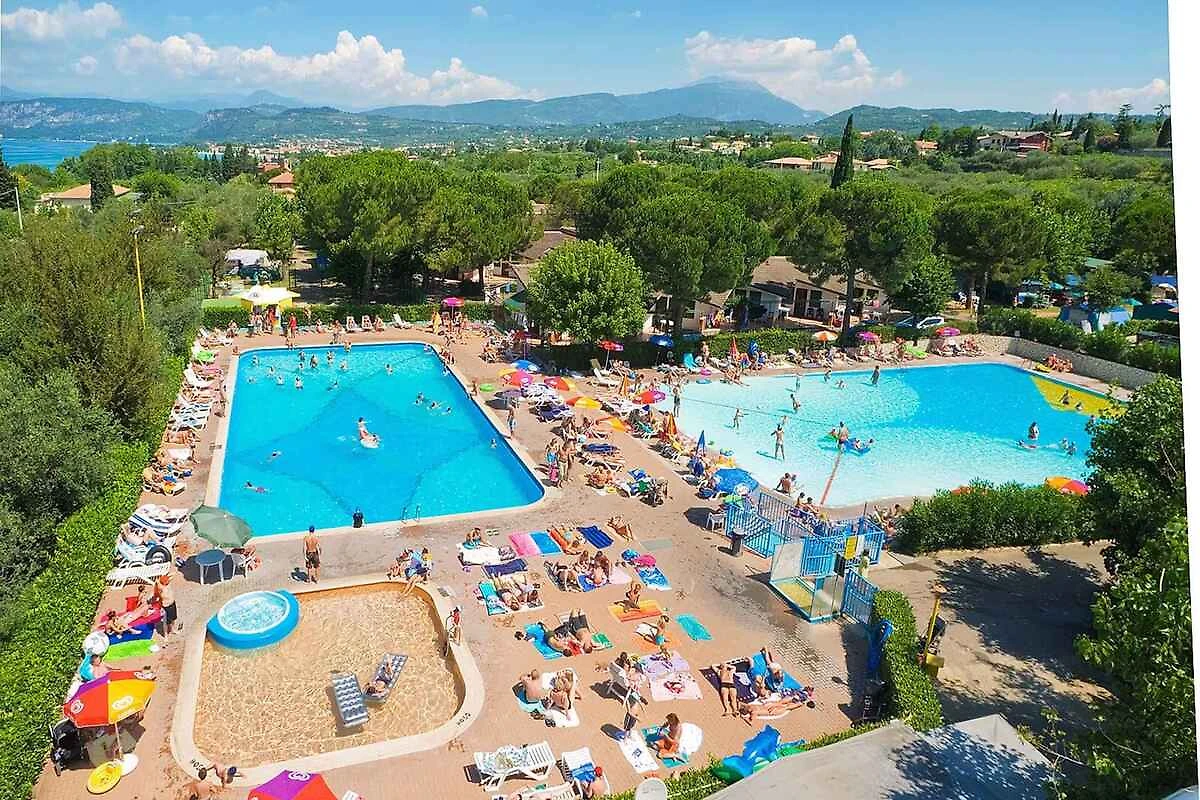 De stacaravan ligt op een camping (landscategorie 4 sterren) en is omgeven door een 170000 m² groot, gesloten grondstuk met tuin met bomen en struiken. het grondstuk is met een heg omheind. de Het park heeft receptie, geldautomaat, 3 Restaurants, supermarkt, kiosk, wassalon, pizzeria, bar, gezelschapskamer, terras, kinderspeelhoek, parasol, ligstoel, tuinmeubelen en grillmogelijkheid. Voor vermaak zorgt het animatieprogramma voor kinderanimatie en volwassene. voor gemeenschappelijk gebruik Zwembad. De zwembaden zijn een van de hoogtepunten van het complex en bieden mogelijkheden voor alle leeftijden. Kinderen en volwassenen kunnen zich vermaken in de zwembaden met glijbanen en whirlpool, terwijl het spectaculaire zwembad van 2100 m² met een spraypark en glijbanen een unieke ervaring biedt. De zwembaden aan de kant van San Vito zijn geopend van eind maart tot begin november, terwijl die aan de kant van Cisano geopend zijn van eind april tot half september. whirlpool, minigolf, tennis (1 plaats), tafeltennis, verhuur van fietsen en verhuur van boten. verdere uitrusting: Het horeca-aanbod van de camping is rijk en gevarieerd. Er zijn drie pizzeria-restaurants, waarvan er een een prachtig terras heeft met uitzicht op het meer. Gasten kunnen kiezen uit bediening aan tafel, meeneemgerechten voor snelle maaltijden of verfrissende pauzes in de bars en snackbars op het terrein.