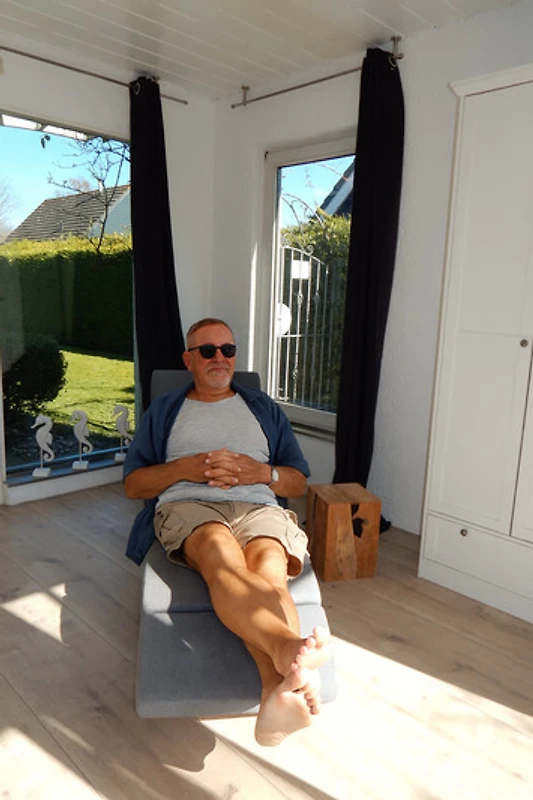 Ingebed in een liefdevol aangelegde tuin op ca. 430 m² perceel wacht u een vrijstaand vakantiehuis met 95 m² woonoppervlak – ideaal voor rust en ontspanning. Op het zonnige terras nodigen een stijlvolle rotan zithoek met vier fauteuils en tafel, twee comfortabele ligstoelen en een barbecue uit tot ontspannen uren in de buitenlucht. Hier geniet u van ontbijt in het groen of zwoele zomeravonden in een gezellige sfeer.