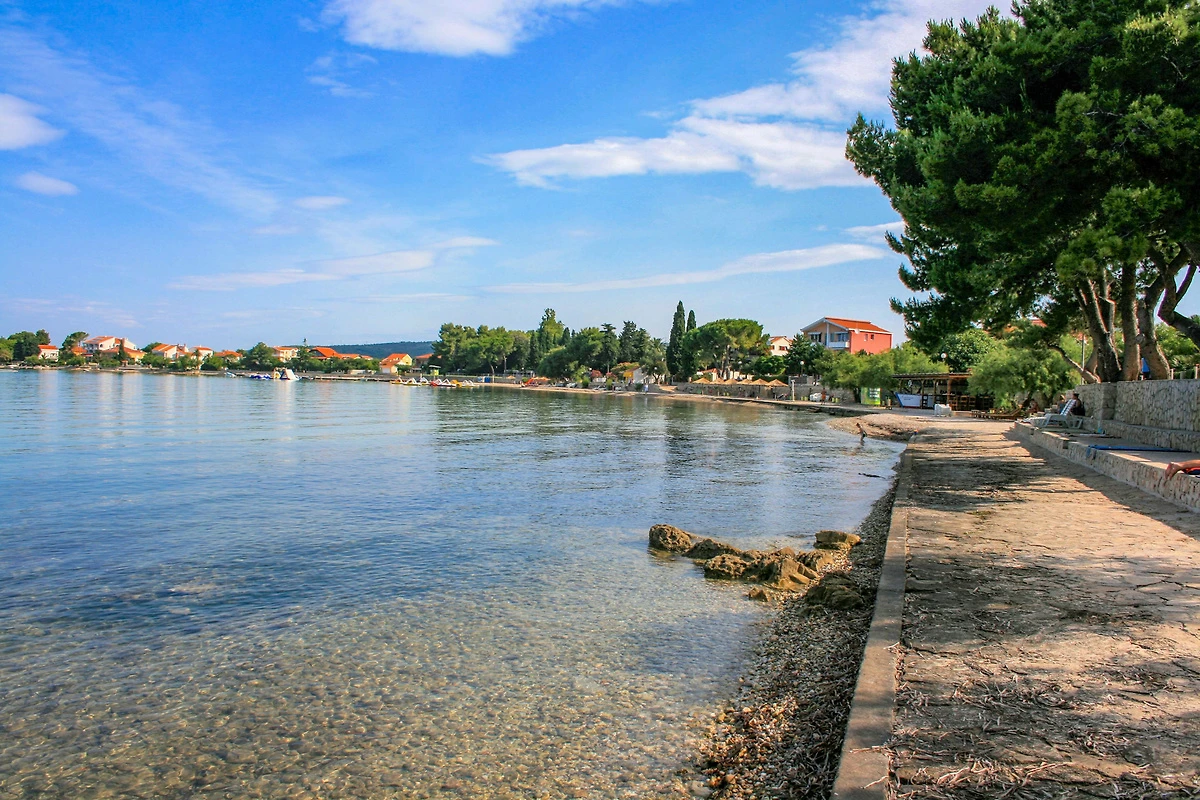 Ligging: Sveti Petar na Moru. De vakantiewoning ligt in een appartementenhuis en is in lokale stijl ingericht. Het grondstuk is in een drukke omgeving in een vakantiehuis-gebied aan de rand van de plaats. Deze plaats is populair vanwege het uitzicht op de zee en het ligt op een zonnige plek. De toegangsweg naar het terrein gaat via een geasfalteerde hoofdweg. Bij het huis zijn parkeerplaatsen op het perceel beschikbaar. De dichtsbijzijnde winkels zijn op 800 m afstand, restaurant 10 m en centrum 800 m. discotheek, dokter, apotheek, bank elk 8 km in Biograd na Moru. bioscoop in Zadar 20 km. vliegveld in Zemunik 14 km. Restaurant is in het huis.