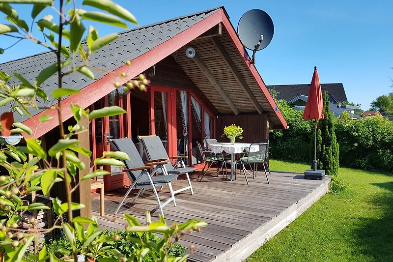 Het vakantiehuis ligt in de directe omgeving van het natuurstrand van Bockholm op een groen, begroeid terrein met veel ruimte om te spelen en te ontspannen. Hier vindt u onder andere een bed met mediterrane kruiden.