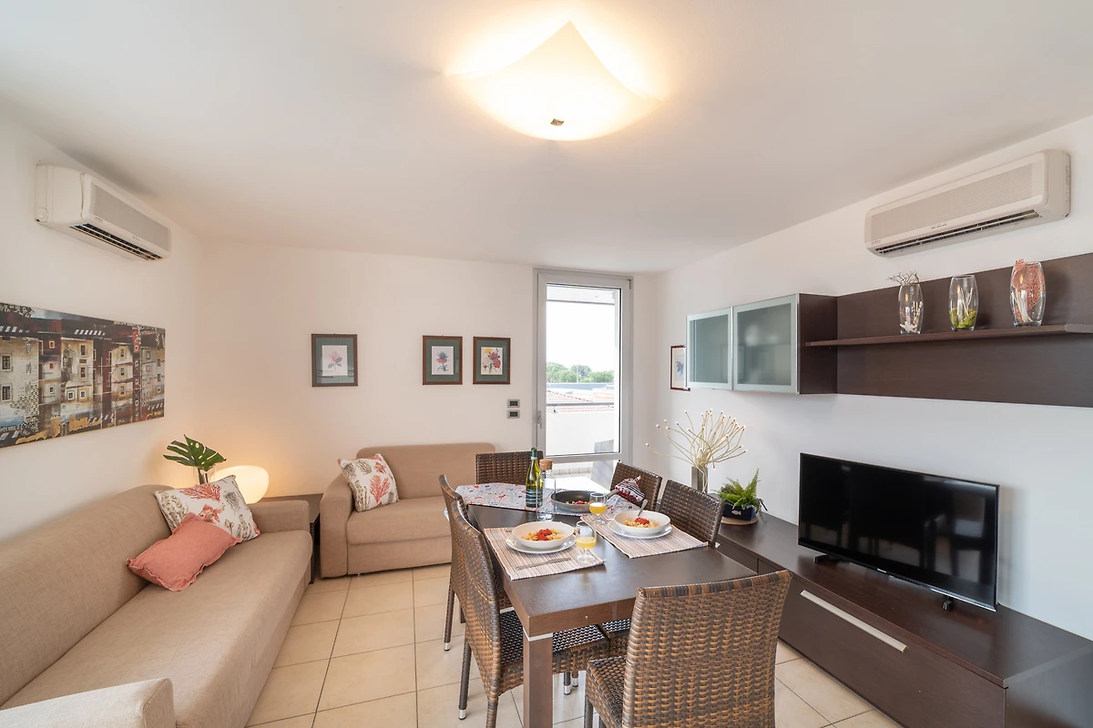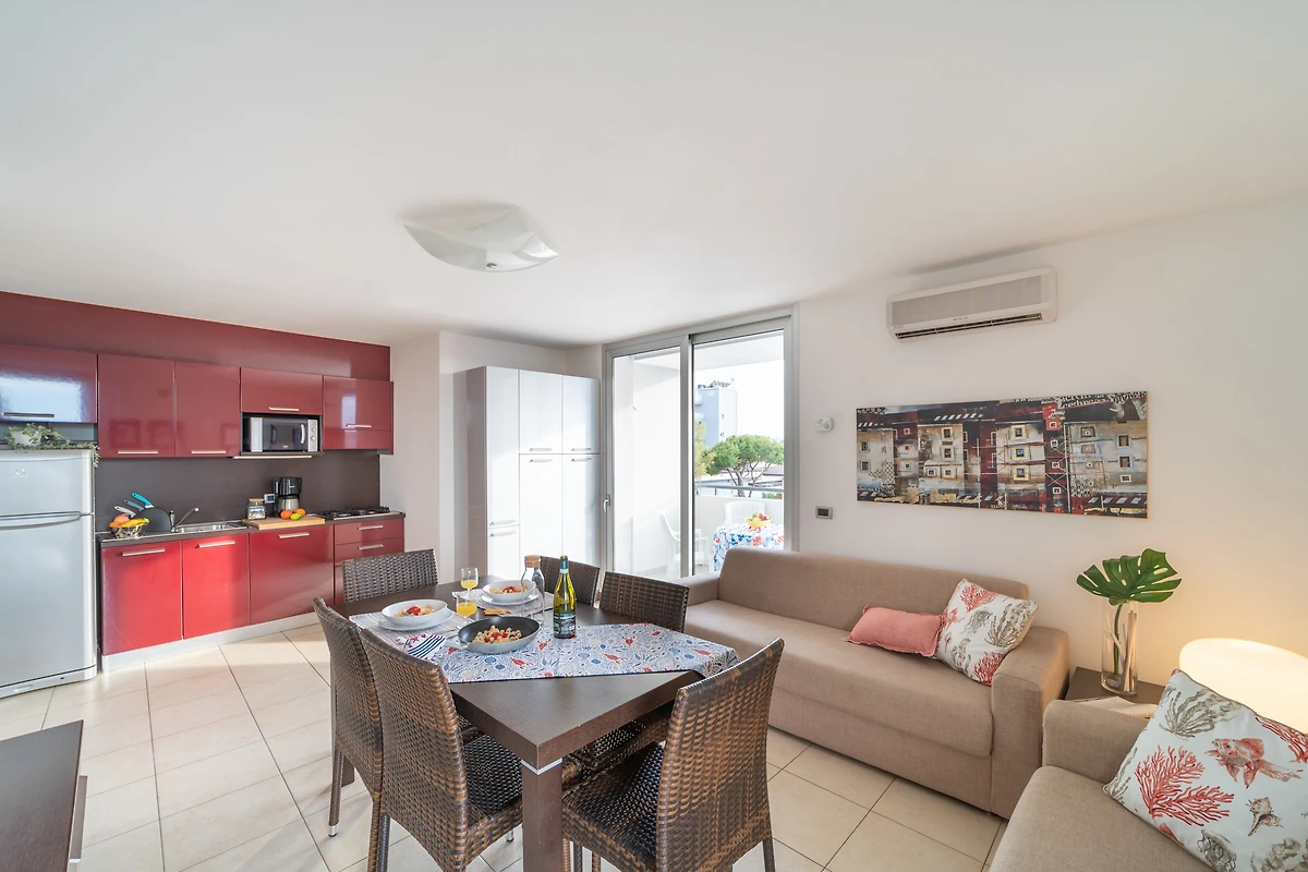 Ligging: Lignano, wijk Sabbiadoro. De vakantiewoning ligt is modern en functioneel ingericht. Het grondstuk is in een residentie. Bij het huis zijn parkeerplaatsen op het perceel beschikbaar. De dichtsbijzijnde winkels zijn op 220 m afstand, restaurant 260 m en centrum 600 m.