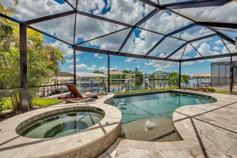 Cape Coral staat bekend als het Venetië van Amerika vanwege de talloze kanalen. Van Fort Myers luchthaven ongeveer 30 min en van Tampa 2 uur naar het huis. 2,5 uur naar Orlando met zijn vele parken zoals Sea World, Disney World of Universal Studios. 1 uur zuidwaarts via Naples naar de Everglades. Cape Coral heeft zijn eigen kleine strand met Yacht Club. De beroemdste, Fort Myers Beach, Sanibel of Captiva Island kunnen ook worden bereikt in 35 min. Er zijn veel winkelmogelijkheden in de omgeving. De volgende grote supermarkt en andere winkels zijn met de auto in 5 minuten te bereiken. Groot winkelcentrum en outlet winkels in 20min. Het waterpark Sun Splash ligt in de directe omgeving. Cape Coral ligt tussen de prachtige eilanden Captiva, Sanibel en Pine Island. Ontdek de Caribische witte zandstranden.