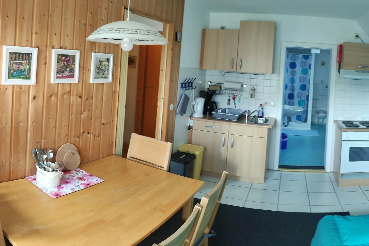 De vakantiewoning heeft 1 slaapkamer met een tweepersoonsbed. Daarnaast is er een slaapbank. Een keuken met gezellige eethoek, met fornuis en oven en uitgerust met serviesgoed, kookgerei, broodrooster, koffiezetapparaat. Overdekt terras met bank en tafel. Bovendien is er een gastentuin. Het appartement heeft douche, WC en is uitgerust met haardroger.