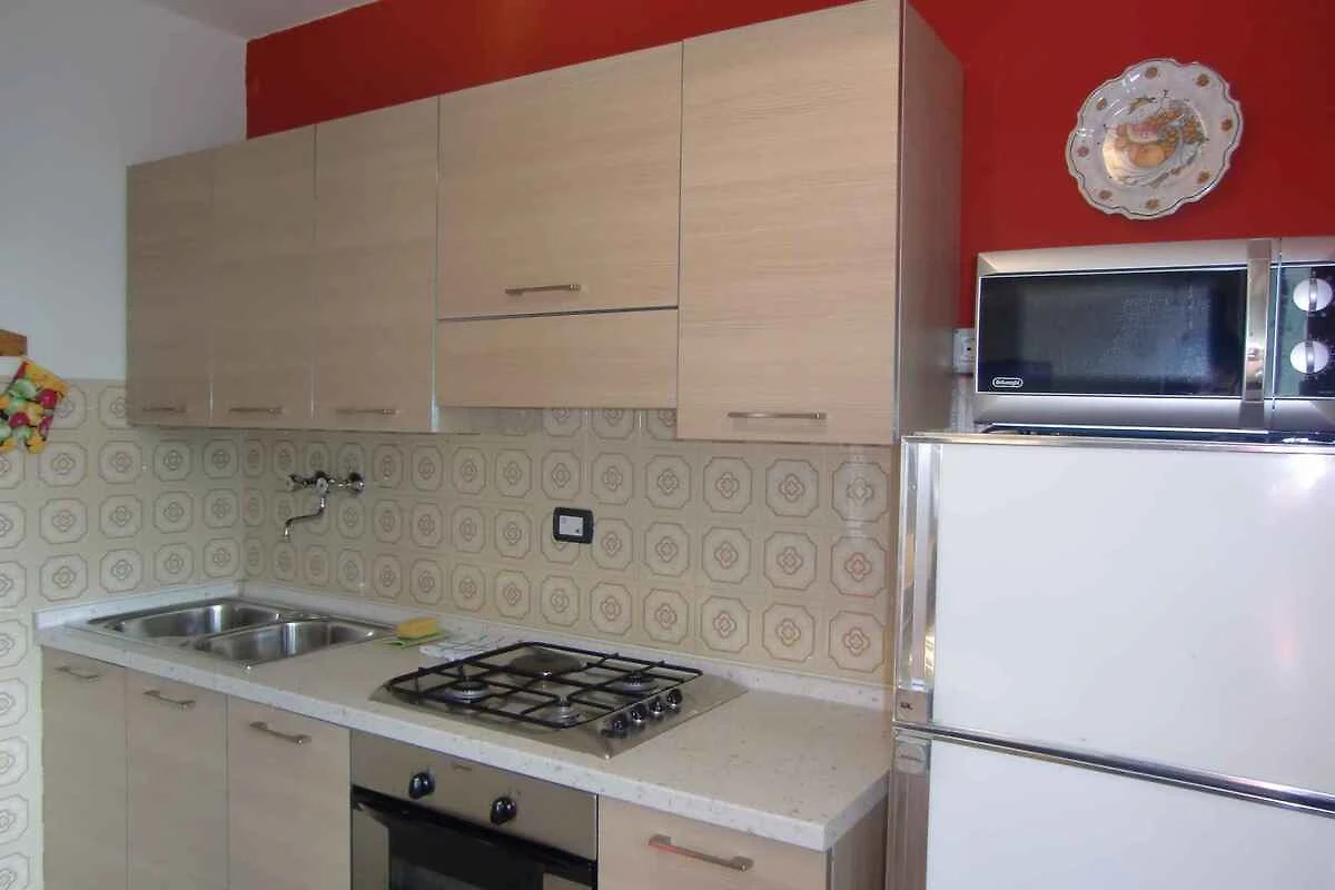 Uw vakantiewoning: Uw vakantiewoning beslaat 1 verdieping, 3 kamers (daarvan 2 slaapkamers), is 75 m² groot en is geschikt voor maximaal 5 personen. Op koude dagen kan uw vakantiewoning verwarmd worden met centrale verwarming (gas). Riscaldamento met radiatori een gas in Ogni Stanza. E 'presente anche il caminetto a legna in soggiorno. Roken is binnen niet toegestaan. De ingang is im Erdgeschoss en gelijkvloers en leidt via de terras en de balkon direct in de woonkamer met deuren naar alle kamers. A casa ambra in un appartamento si accede direttamente dal cortile comune, mentre per l 'altro appartamento si accede a mezzo alcuni scalini passando per il balcone. Onafhankelijke invoer. De indeling van de kamers is als volgt: